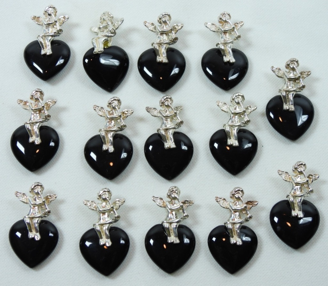 STERLING ANGEL with BLACK STONE HEART (15 DWT)