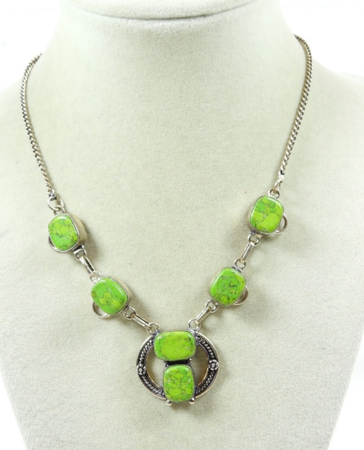 15” GREEN TURQUOISE NECKLACE (13.8 DWT)