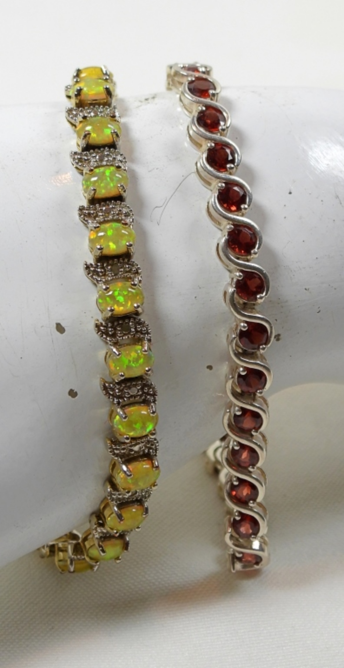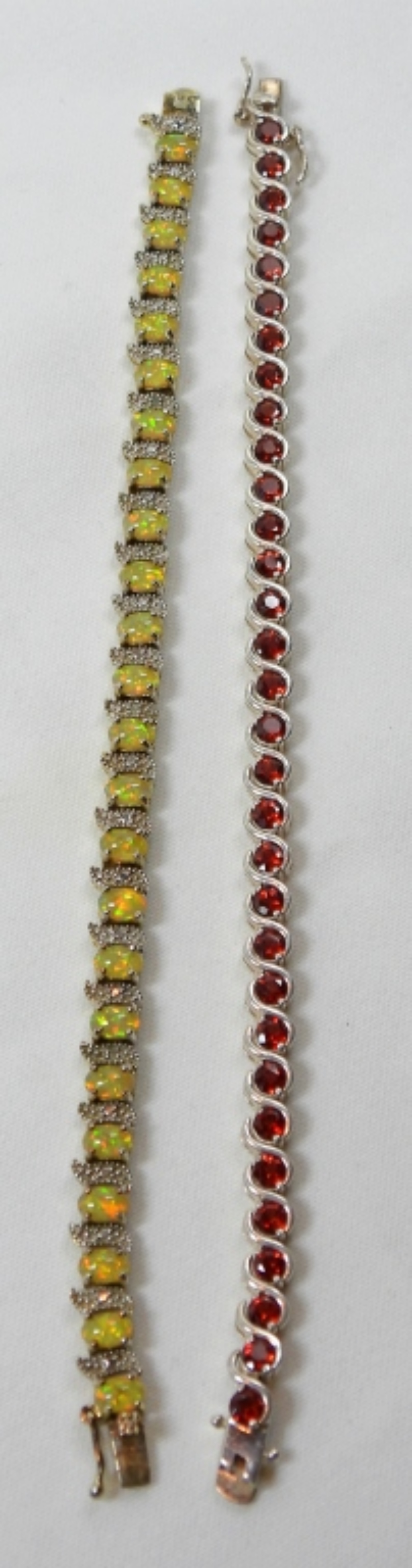 (1) 7.5” YELLOW GEM STONE AND (1) 7.5” RED GEM STONE DECORATED BRACELET DWT (18.6)