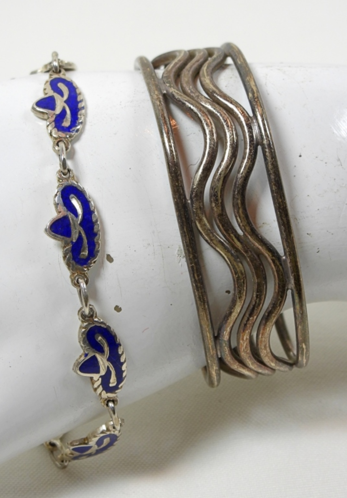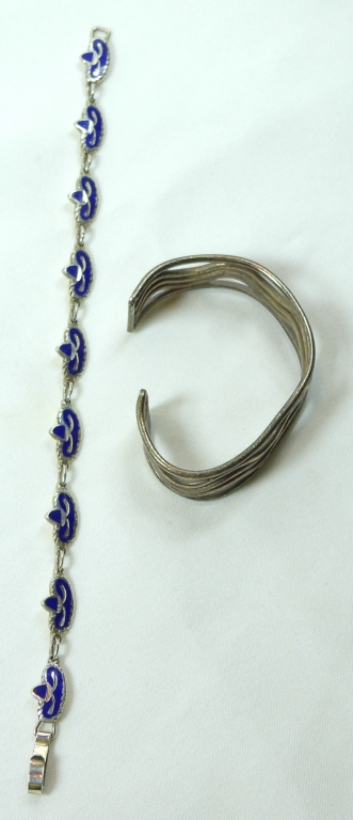 1 BLUE SOMBRERO MEXICO STAMPED BRACELET 8.5” AND 1 STERLING MEXICO STAMPED BRACELET, BRACELET IS SLIGHTLY BENT, SEE PHOTOS FOR DETAILS DWT (28.1)