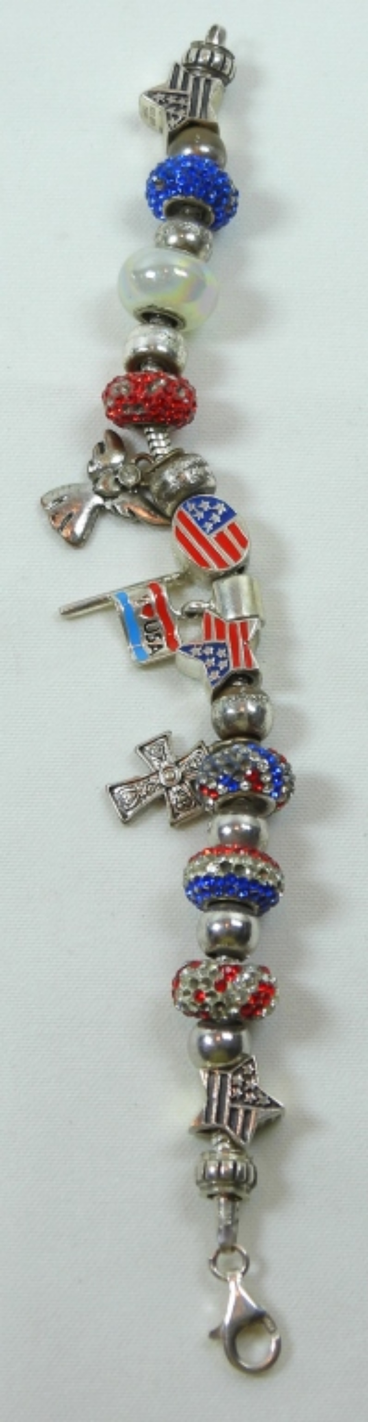 1 7.5” STERLING USA PENDANT BRACELET,3 PENDANTS, DWT (21.5)