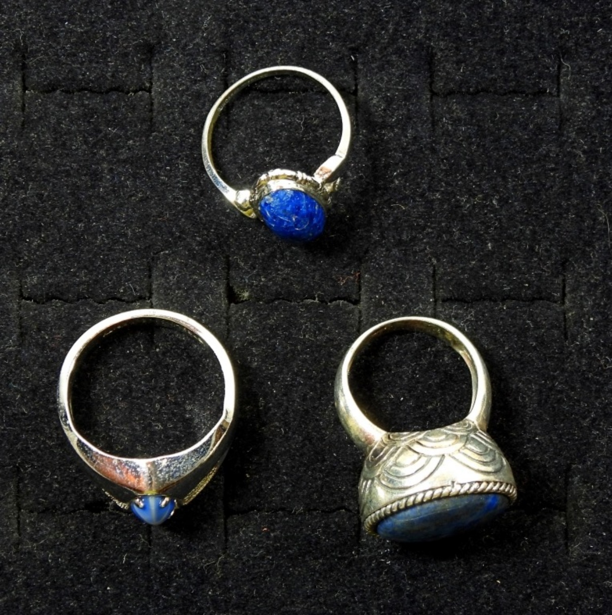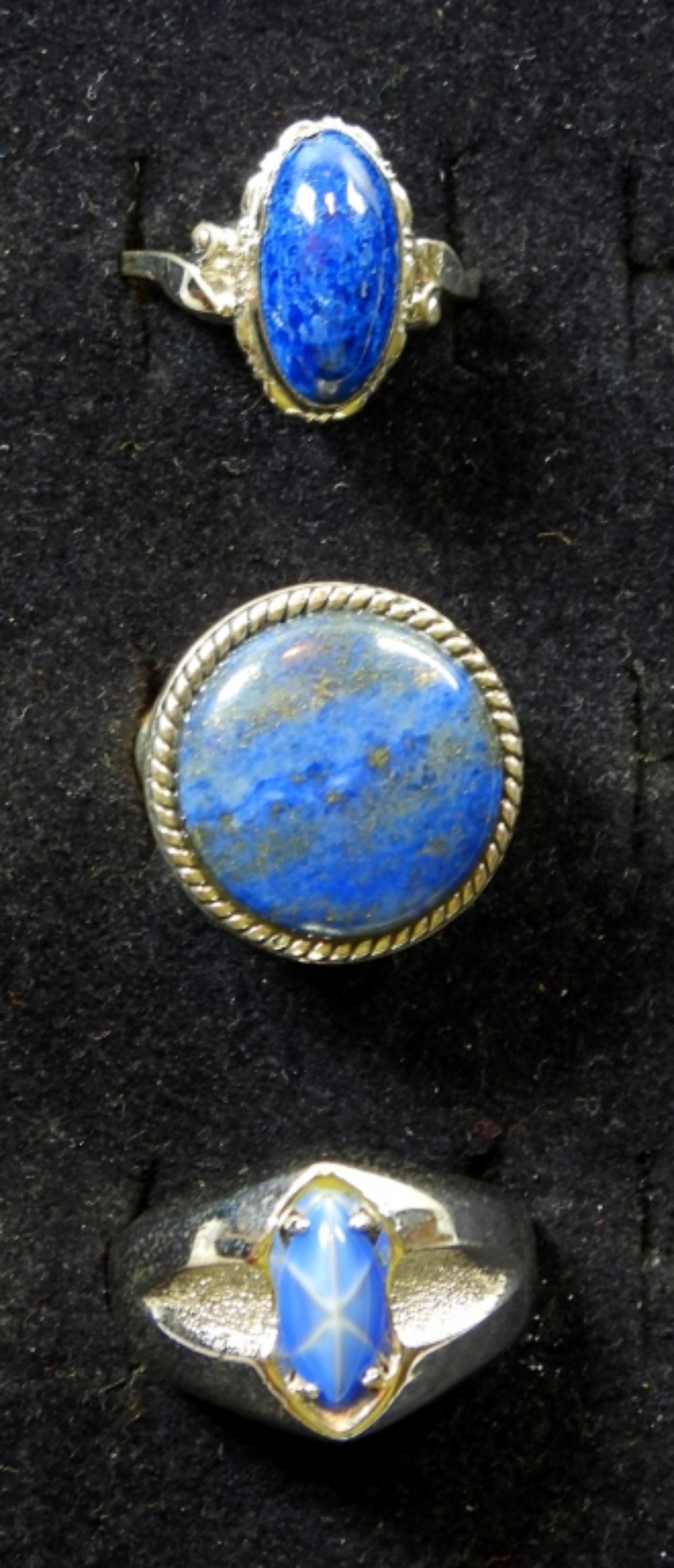 VINTAGE STERLING STAR SAPPHIRE & LAPIS LAZULI RINGS. SIZES 6.5, 9, 11 (18.8 DWT)