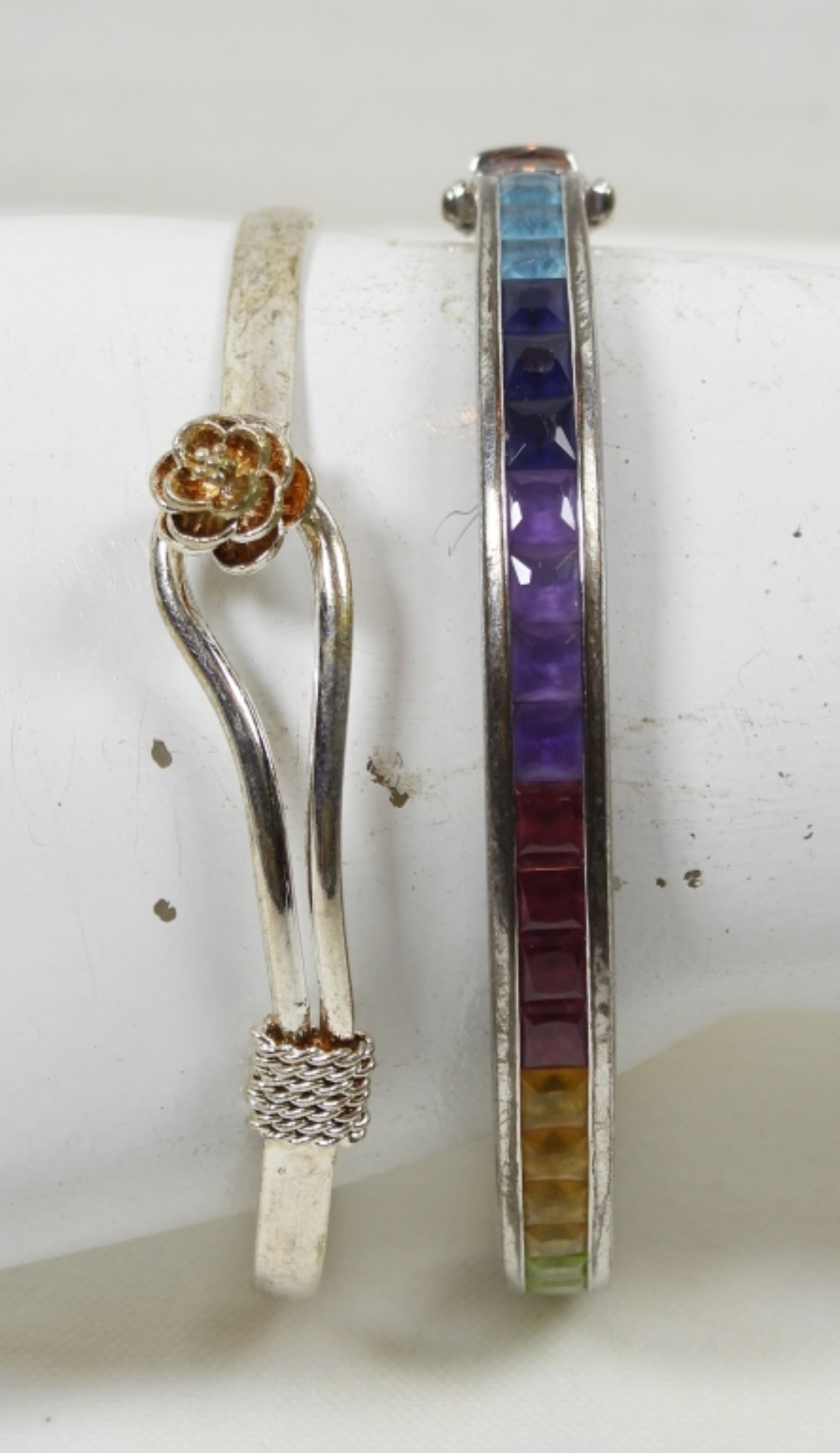 2 SLIDE ON STERLING DECORATIVE BRACELETS DWT (21.3)