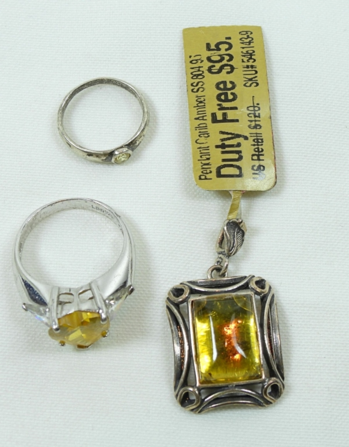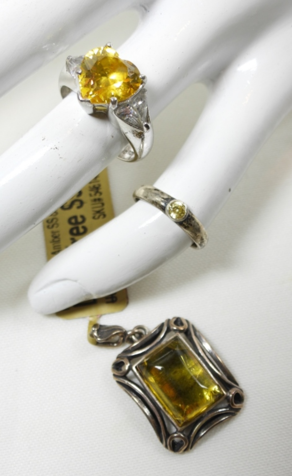 (2) YELLOW STONE RINGS SIZE 7.5 & 3 (7 DWT)