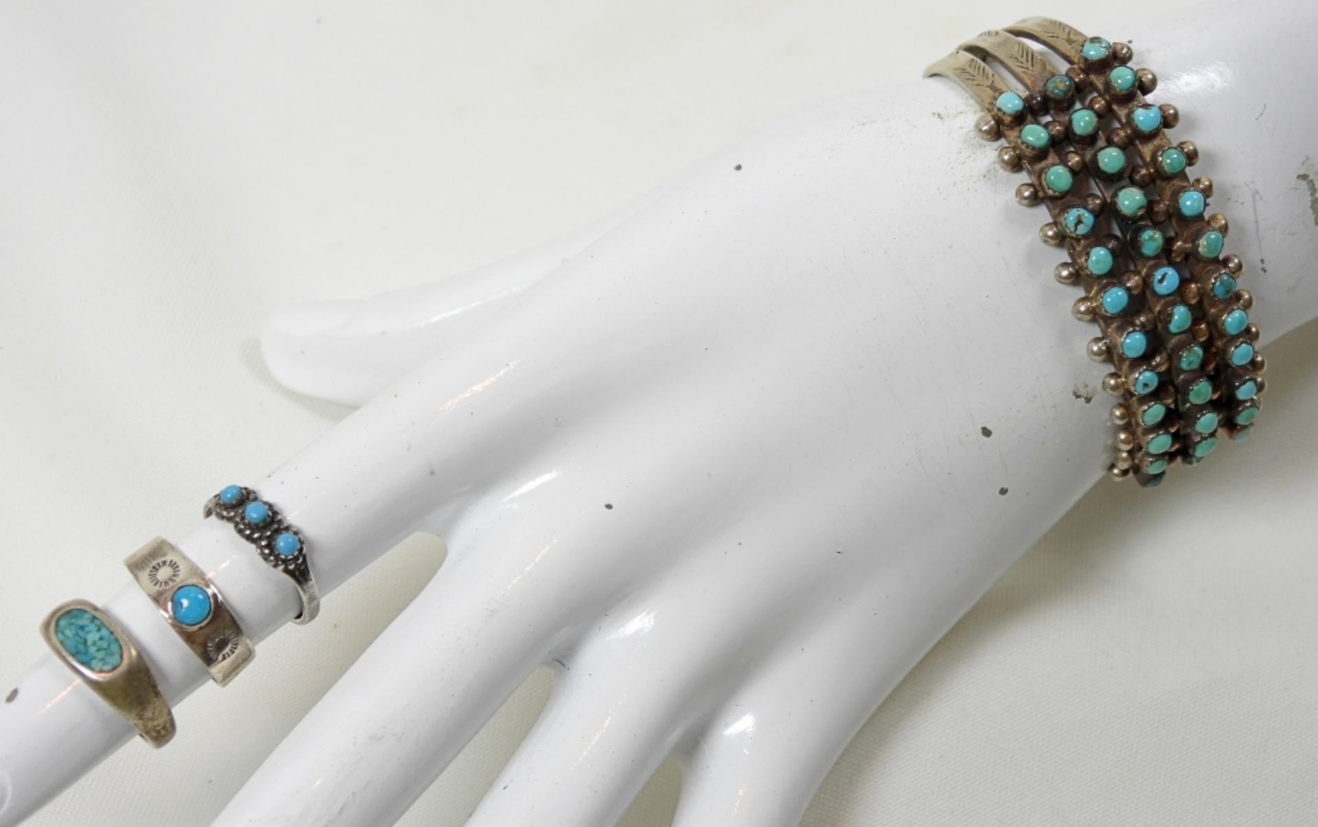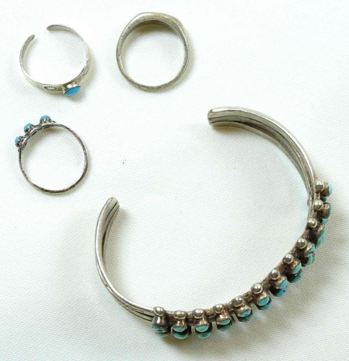 CUFF BRACELET 7″ with GAP, (2) RINGS SIZE 4 & 5, (1) EAR CUFF – (20 DWT)