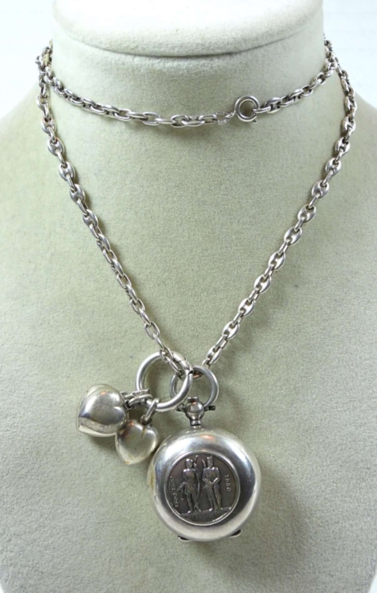 22″ CHAIN w/PENDANT that OPENS & HEART CHARMS (26 DWT)