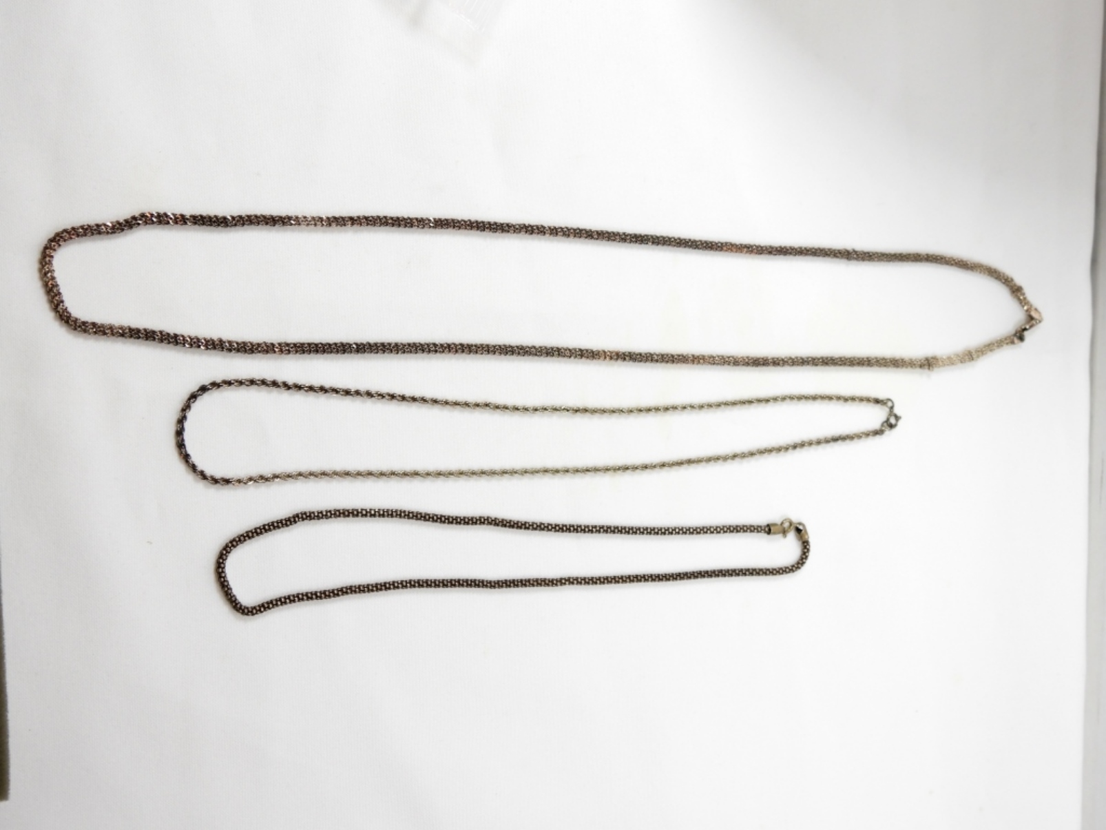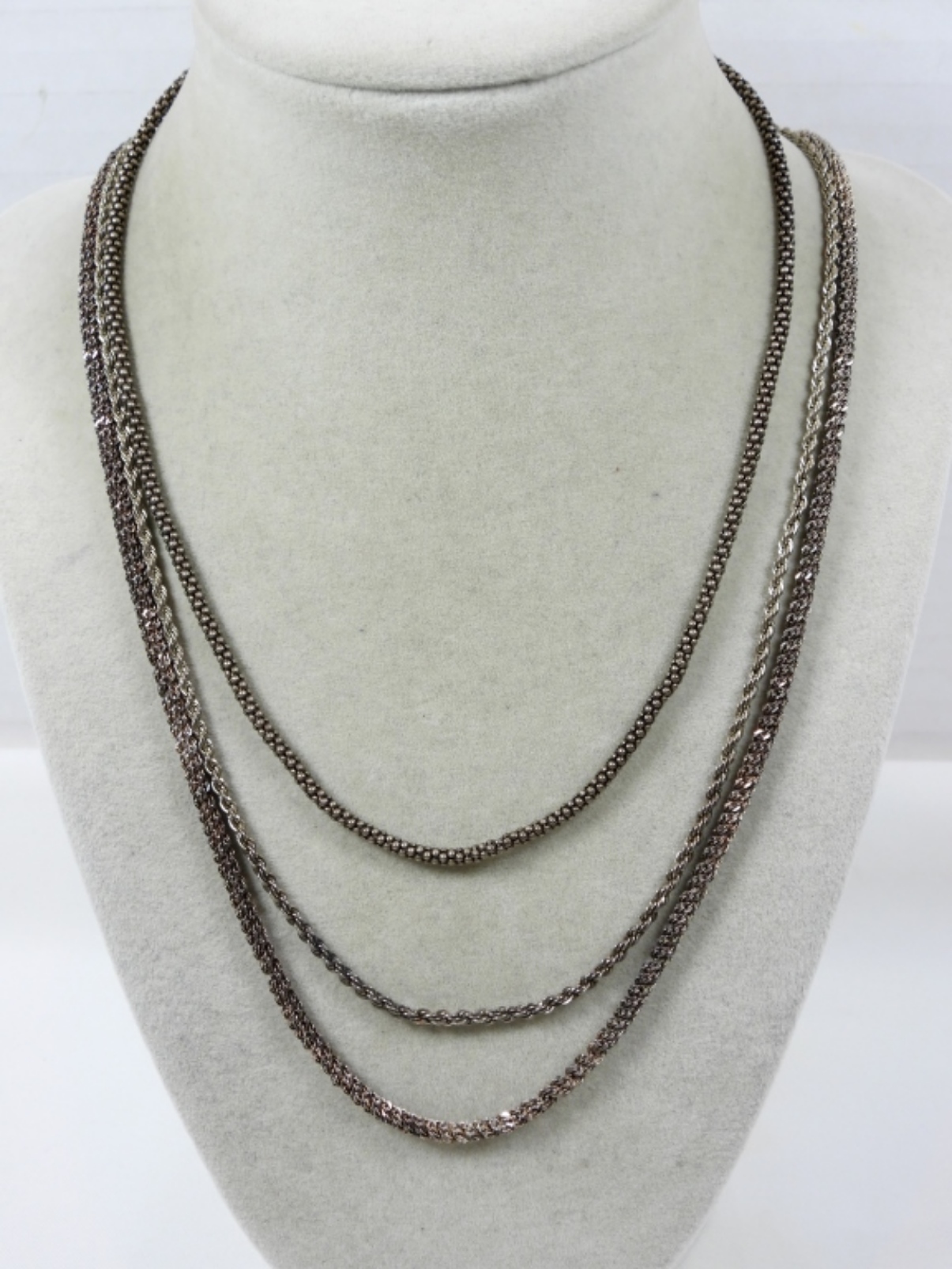 3 VARIETY SPARKLE STERLING NECKLACE CHAINS LENGTHS 16”, 20”, AND 28” DWT (25.4)