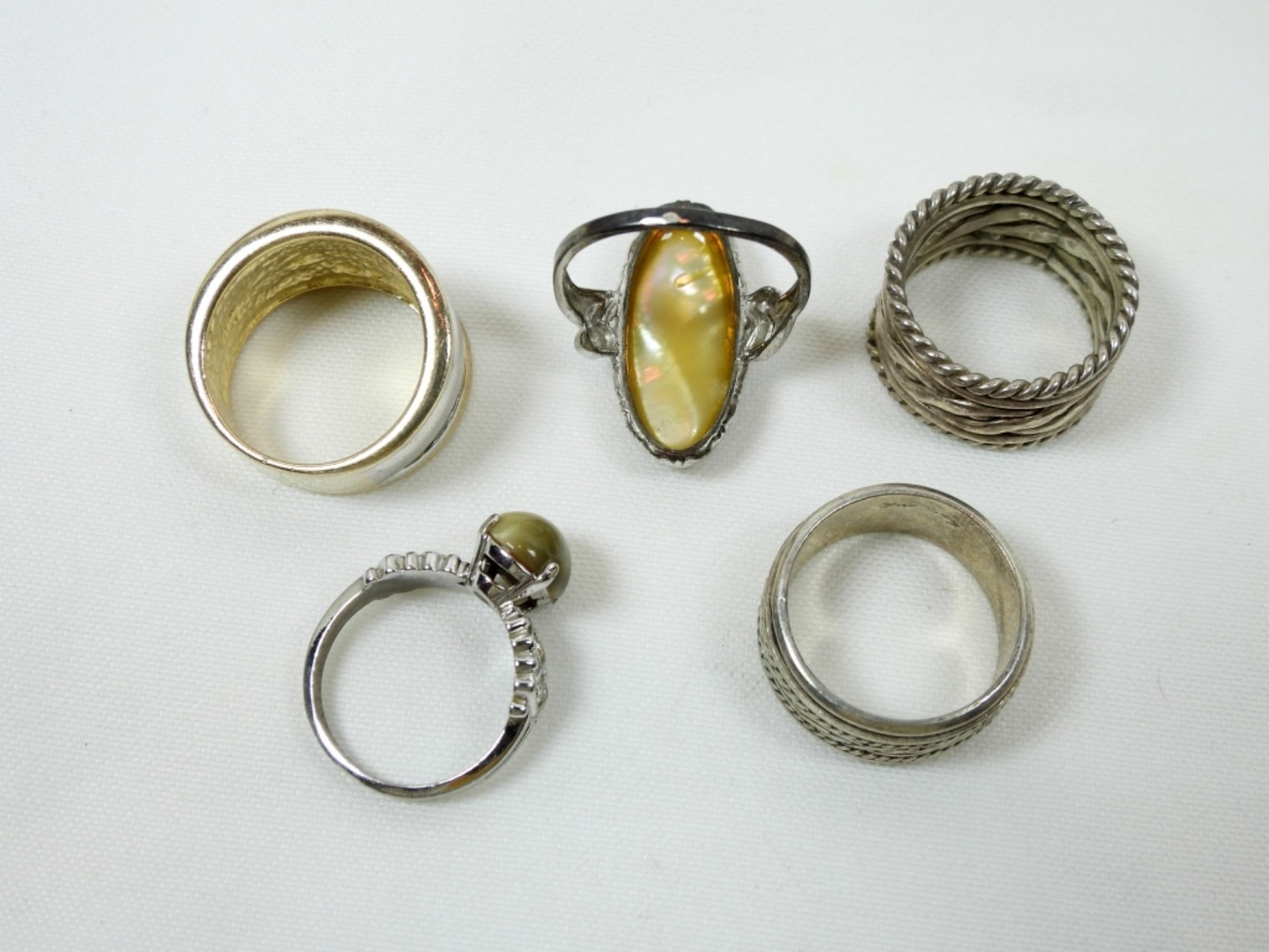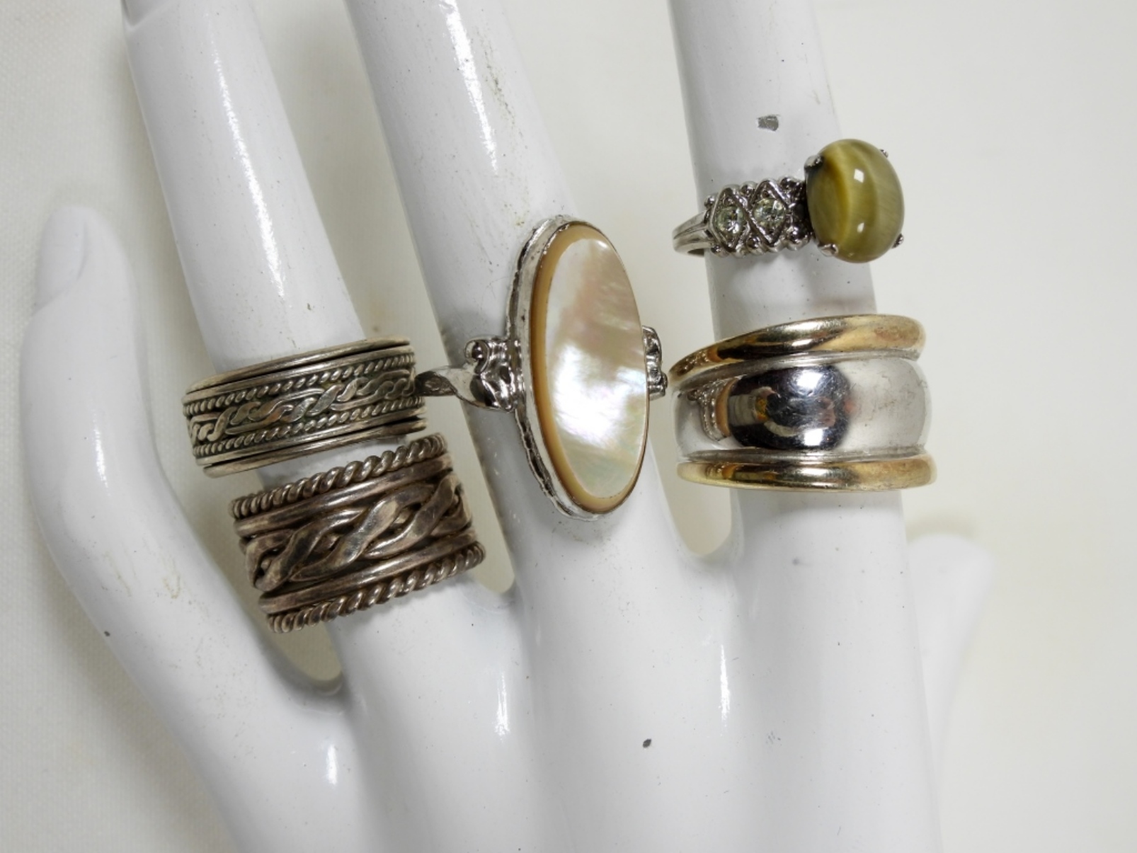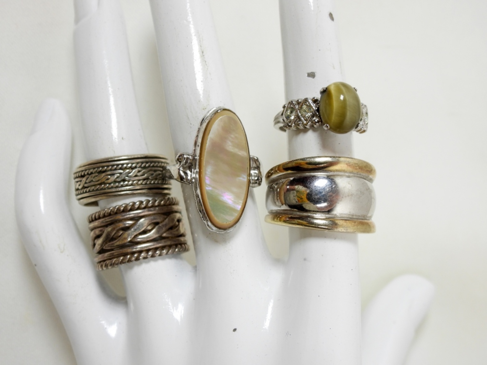 5 VARIETY STERLING RING WITH MULTI COLOR GEM STONES SIZE 6, 6.5, 8, 9, DWT (20.8)