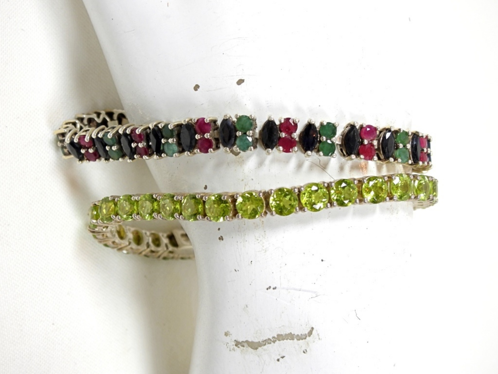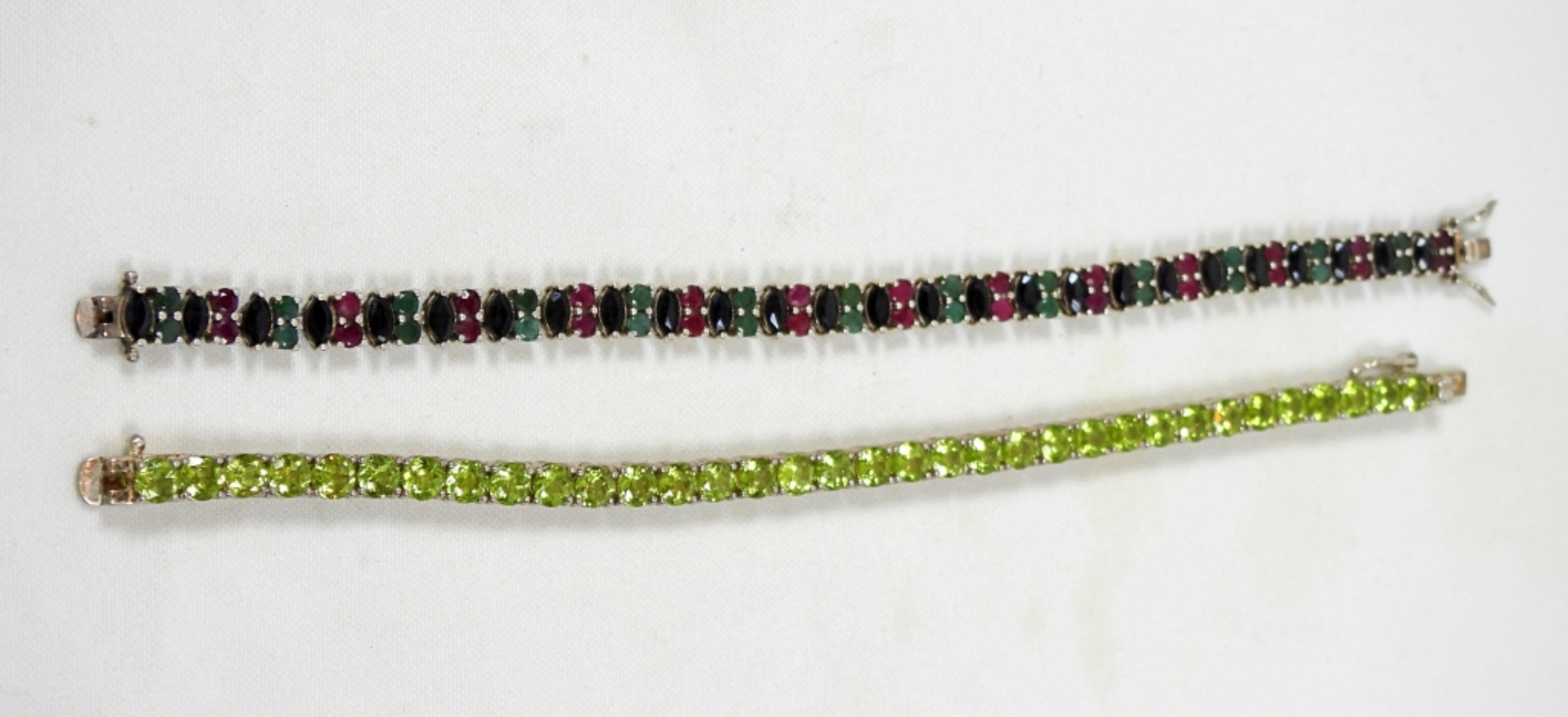 2 STERLING MULTICOLOR GEM STONE BRACELETS, 7.5” GREEN GEMSTONE BRACELET, 8” MULTICOLOR GEM STONE BRACELET, DWT (23.8)