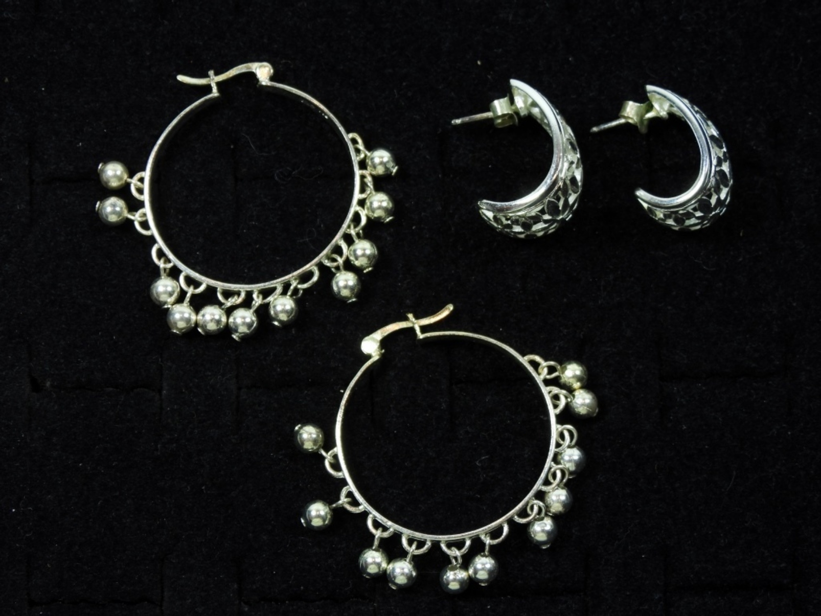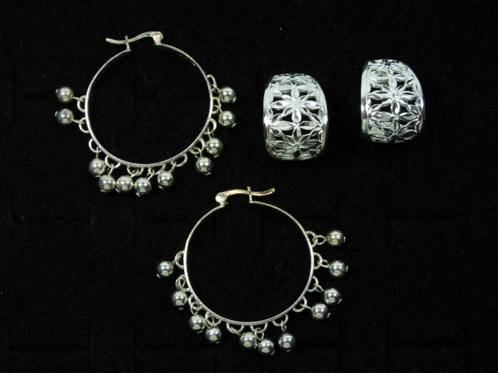 1 PEARL HOOP STERLING EARRING SET, 1 FLORAL PRINT EARING SET, DWT (9.6)