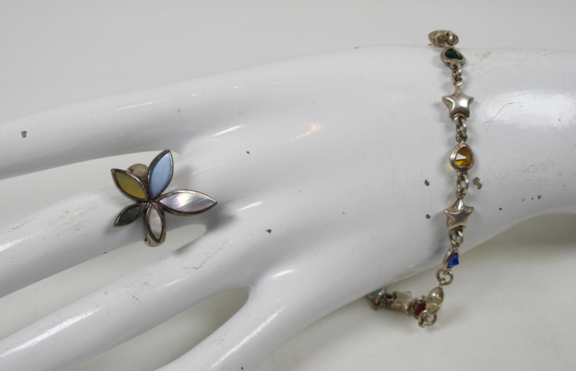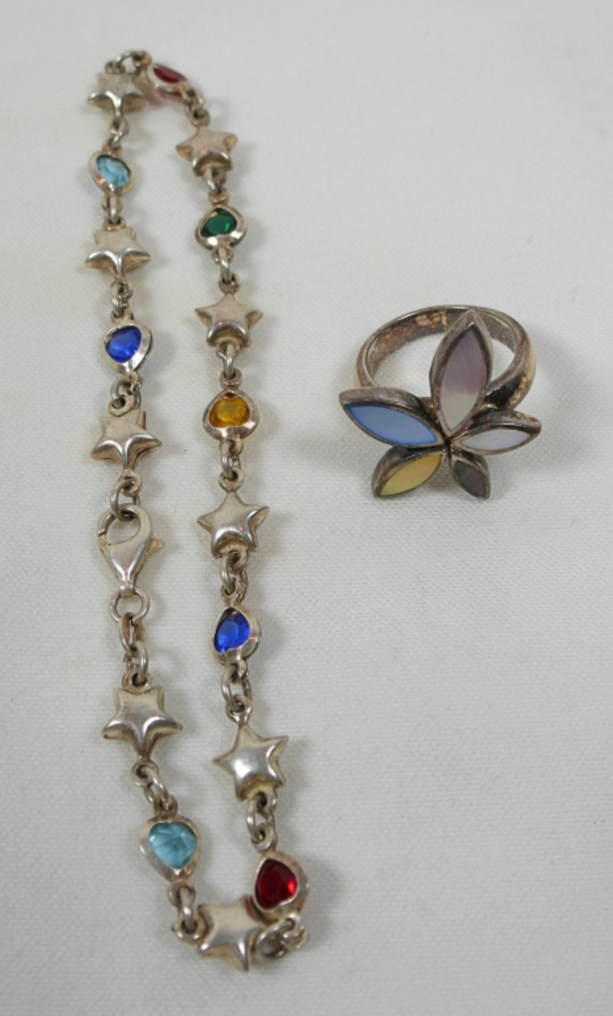 11DWT, RING IS SIZE 6, BRACELET IS ABOUT 9 1/2IN LONG.BOTH STAMPED 925