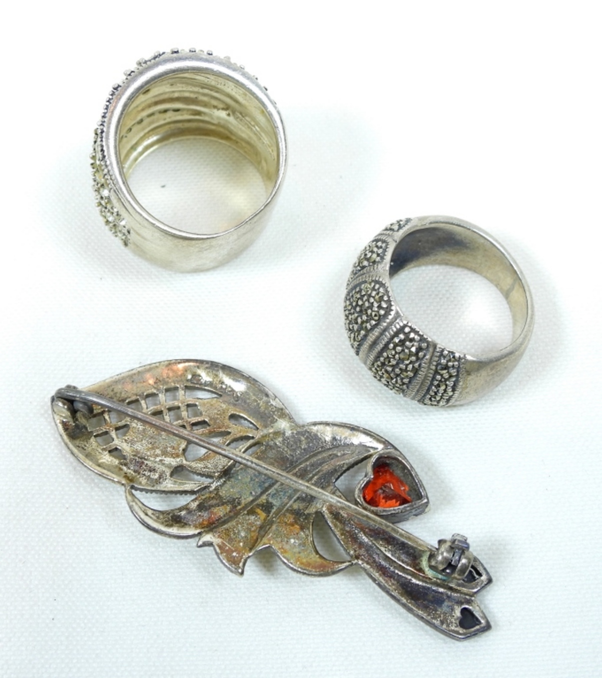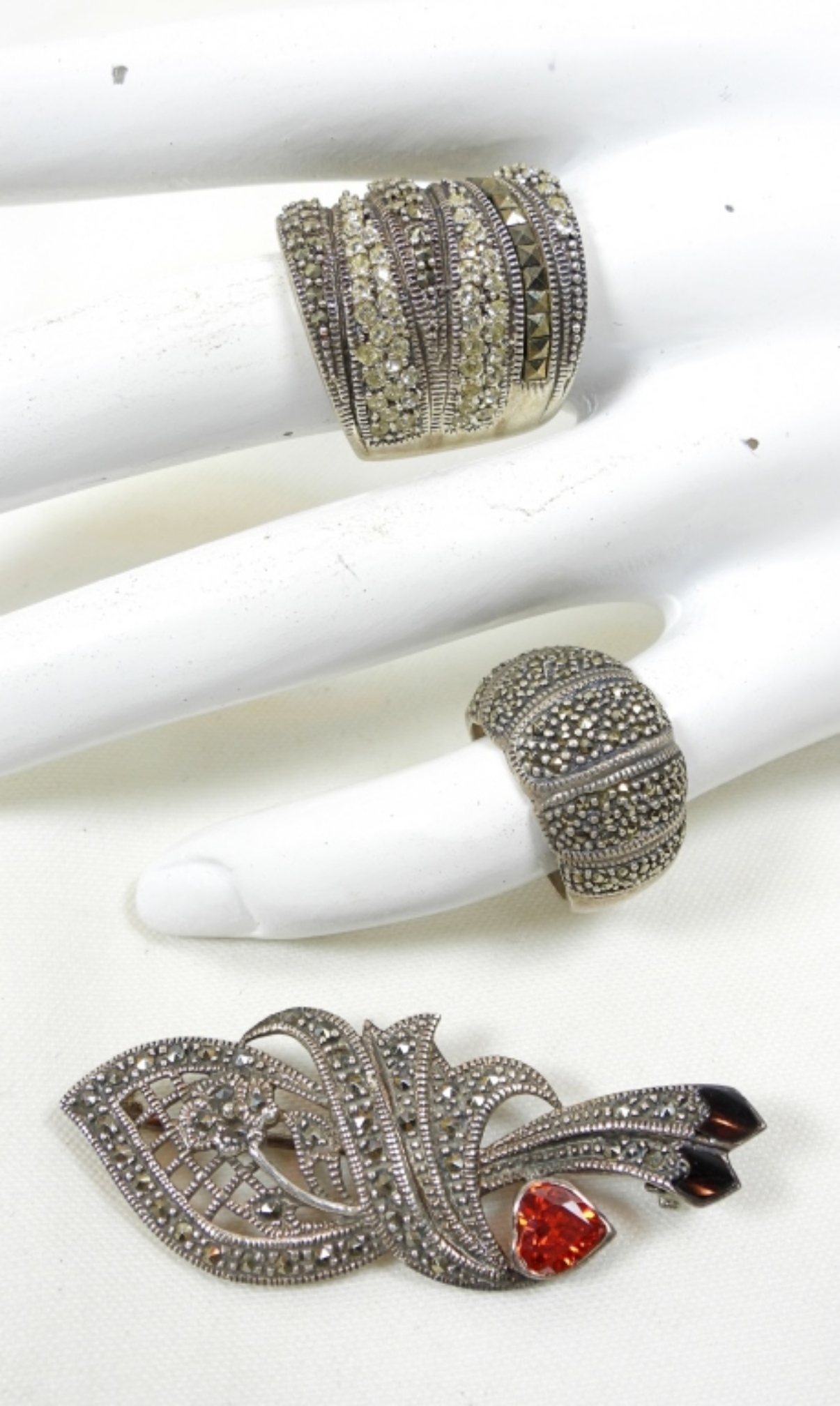 19DWT, RING SIZES 6 & 7, BROOCH IS LITTLE OVER 2IN, ALL STAMPED 925