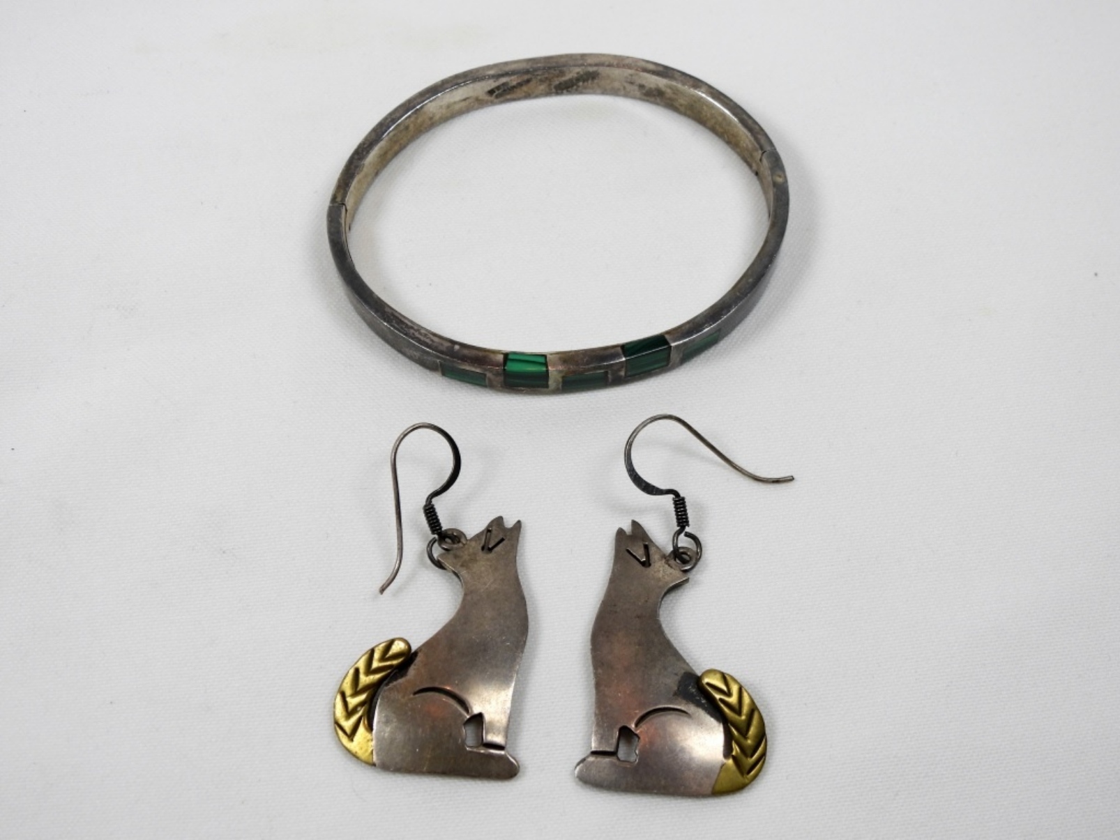 31DWT, HINGE BRACELET STAMPED TC110 MEXICO 925, A PAIR OF PIERCED DANGLED STAMPED 925 MEXICO TP-49