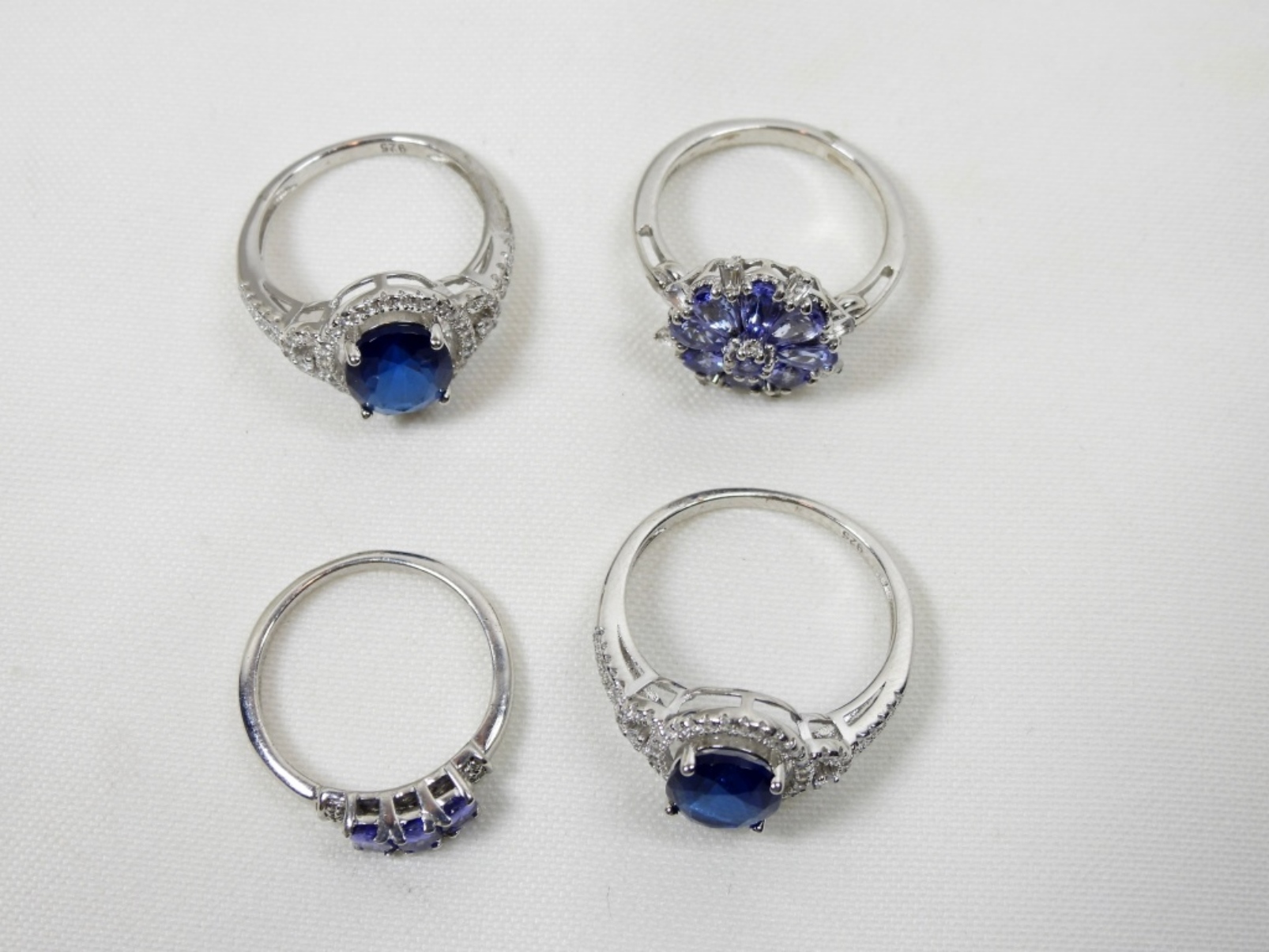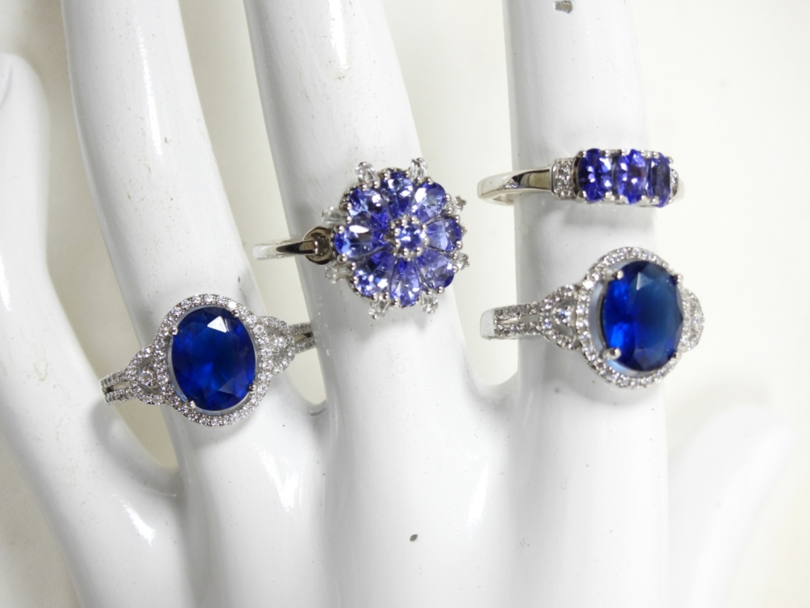 LAB CREATED SAPPHIRE & AMETHYST STERLING RINGS. SIZES 7 AND 9. 7DWT