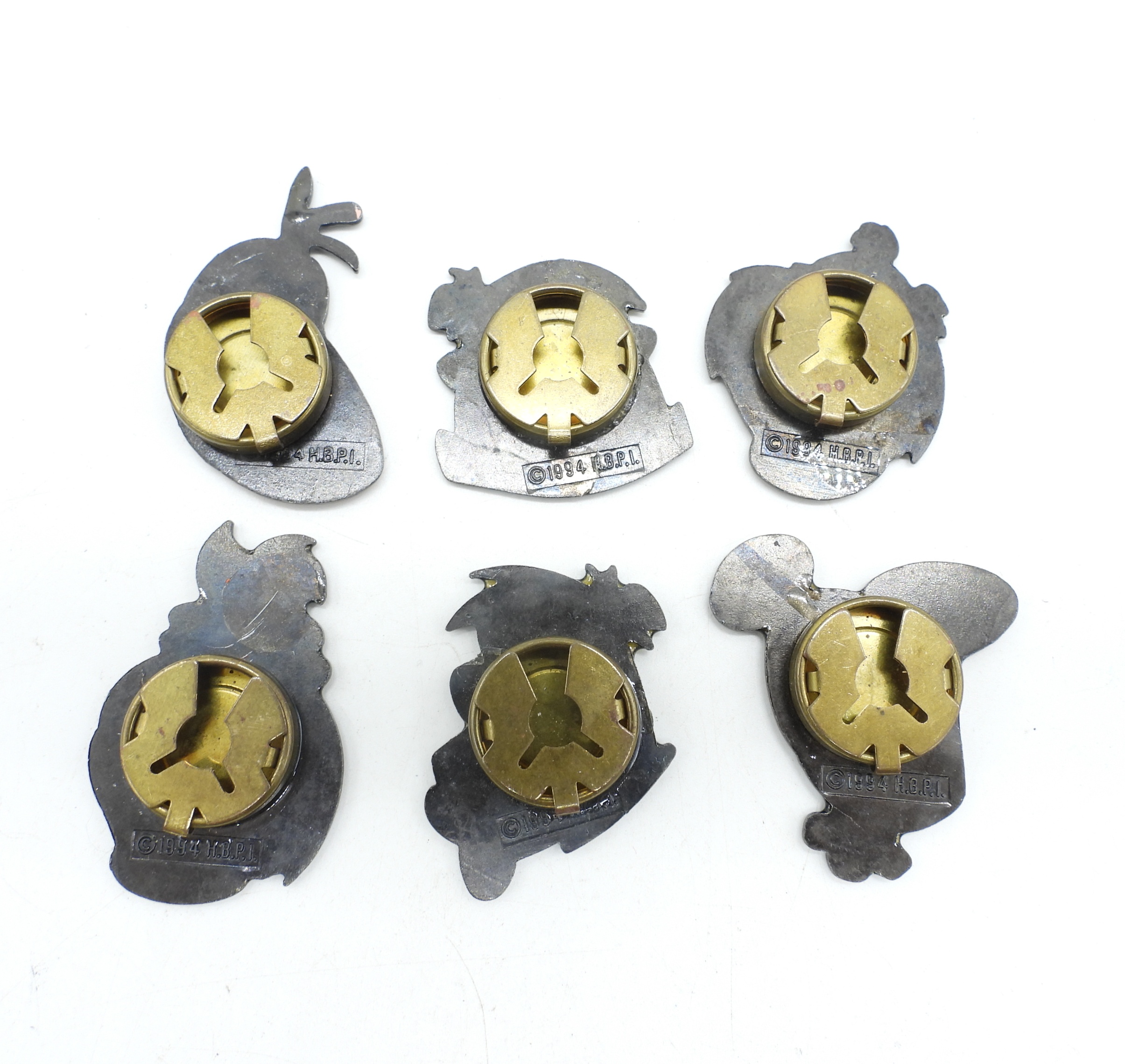 SIX FLINTSTONES VINTAGE BUTTON COVERS. MARKED 1994 H.B.P.I