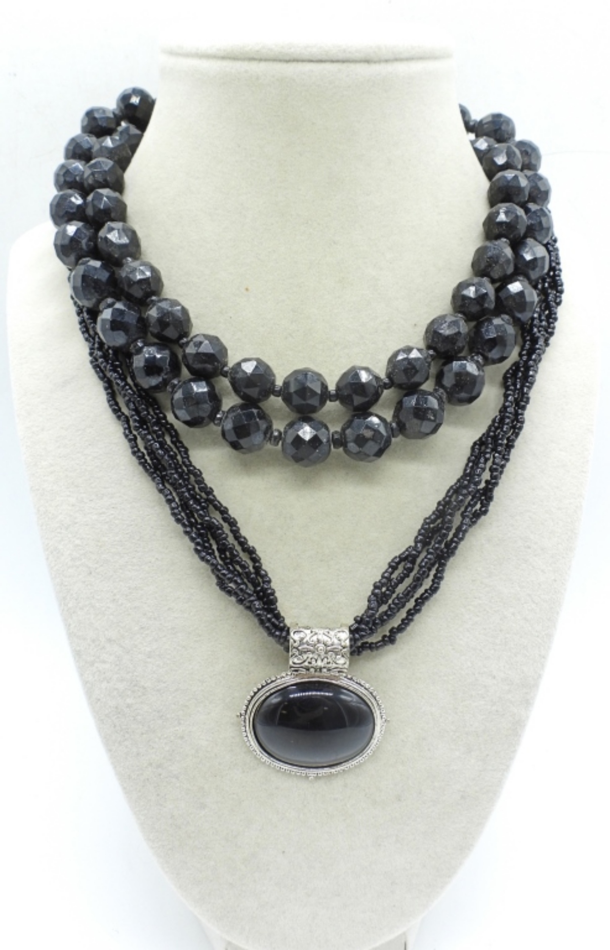 TWO VINTAGE BLACK BEADED NECKLACES. 15″ & 18″.