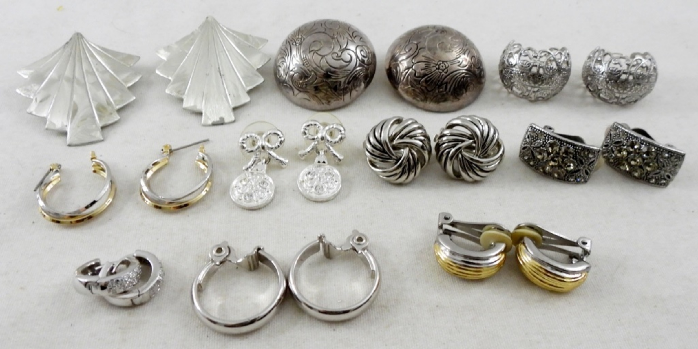 10 ASSORTED SILVER TONE PAIRS OF EARRINGS