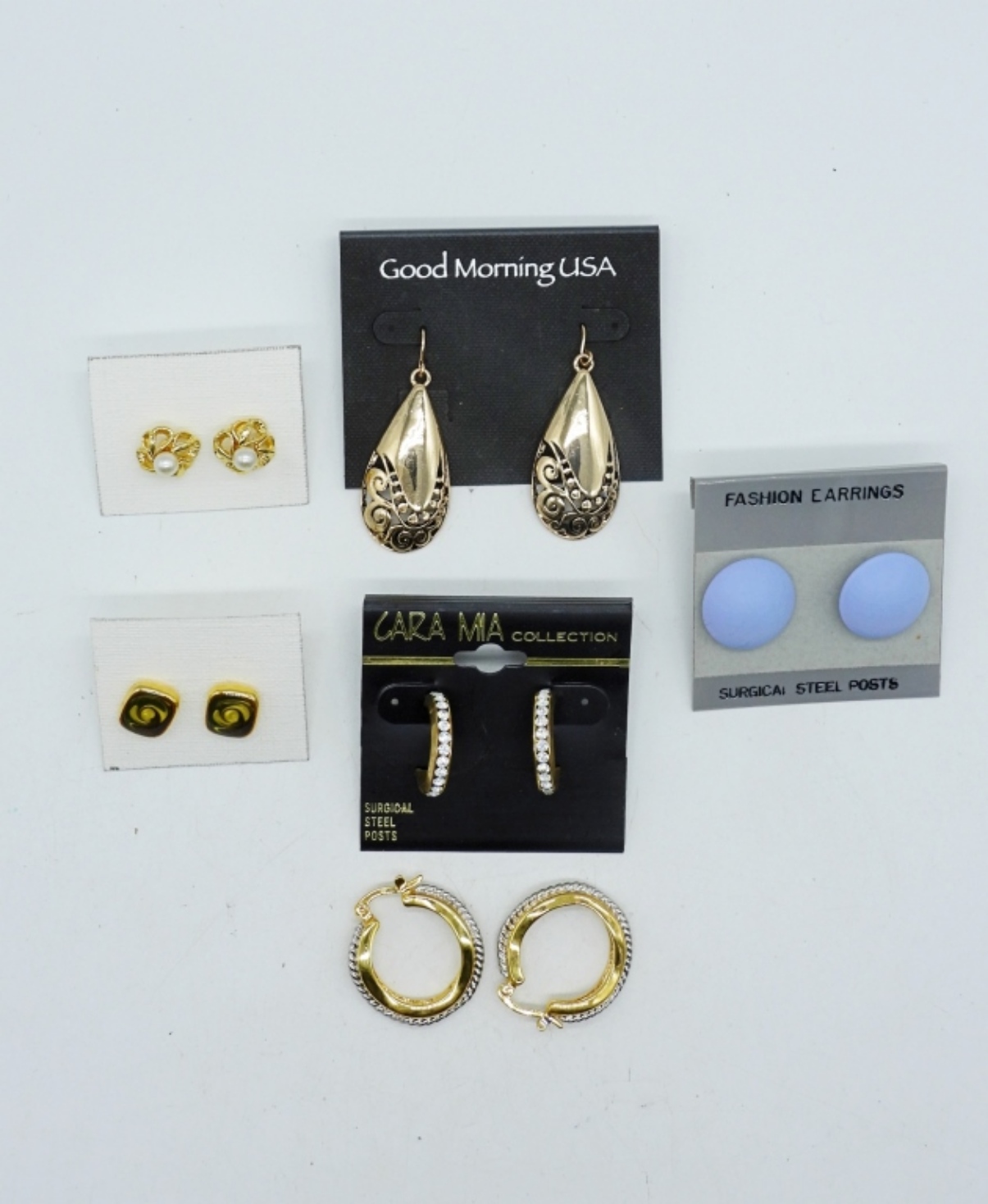 SIX PAIR OF MODERN, GOLD TONE PIERCED EARRINGS
