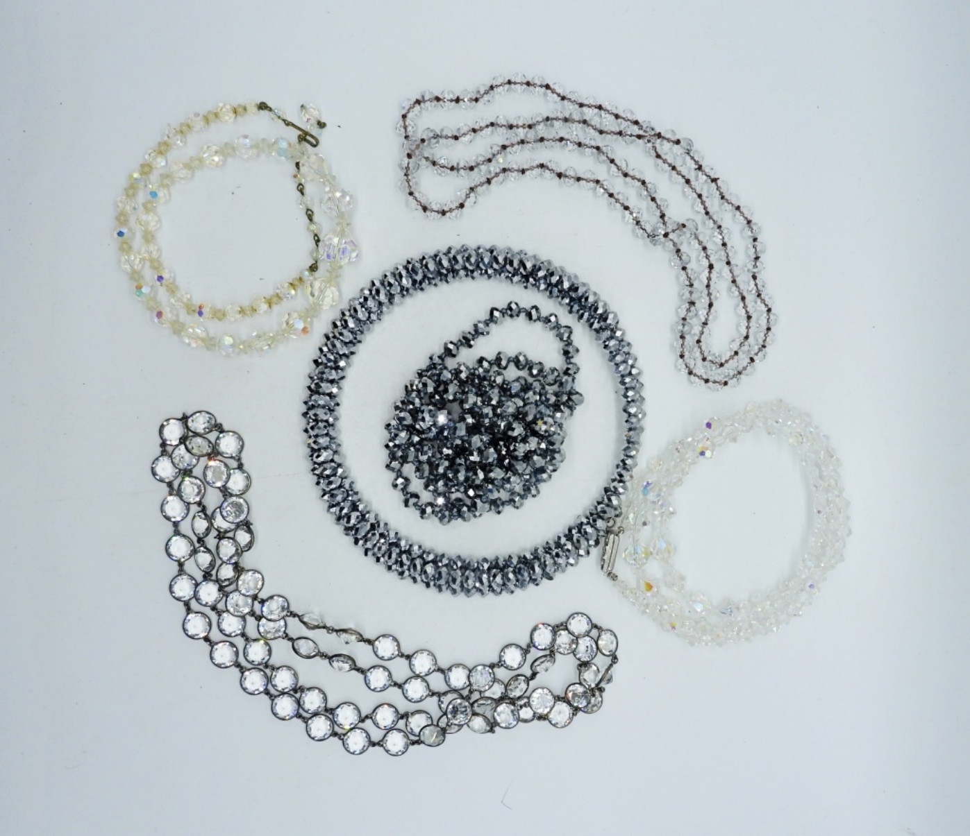 VINTAGE TO NEW, SIX PRETTY SPARLING FASHION NECKLACES. 20″ – 48″.