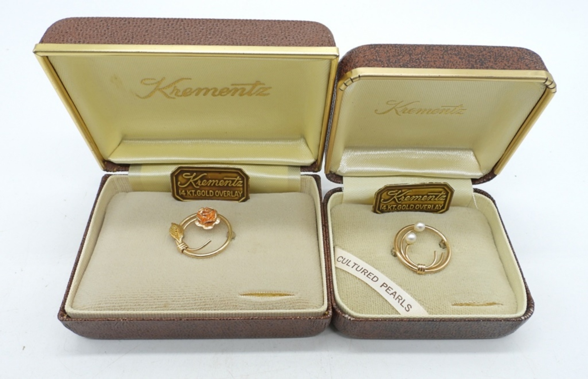 TWO GOLD TONE (14K GOLD OVERLAY). KREMENTZ BRAND – VINTAGE. 1″.