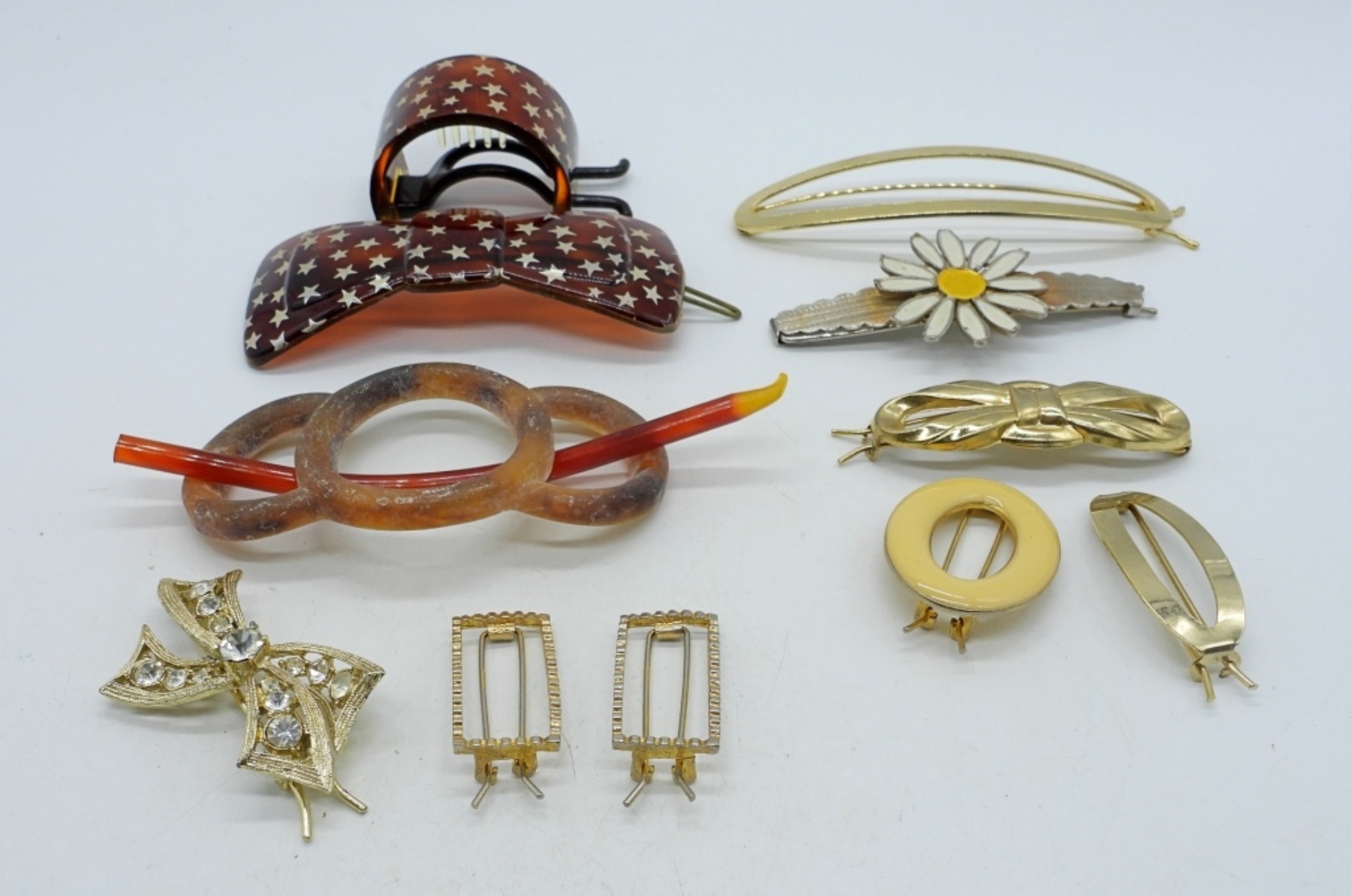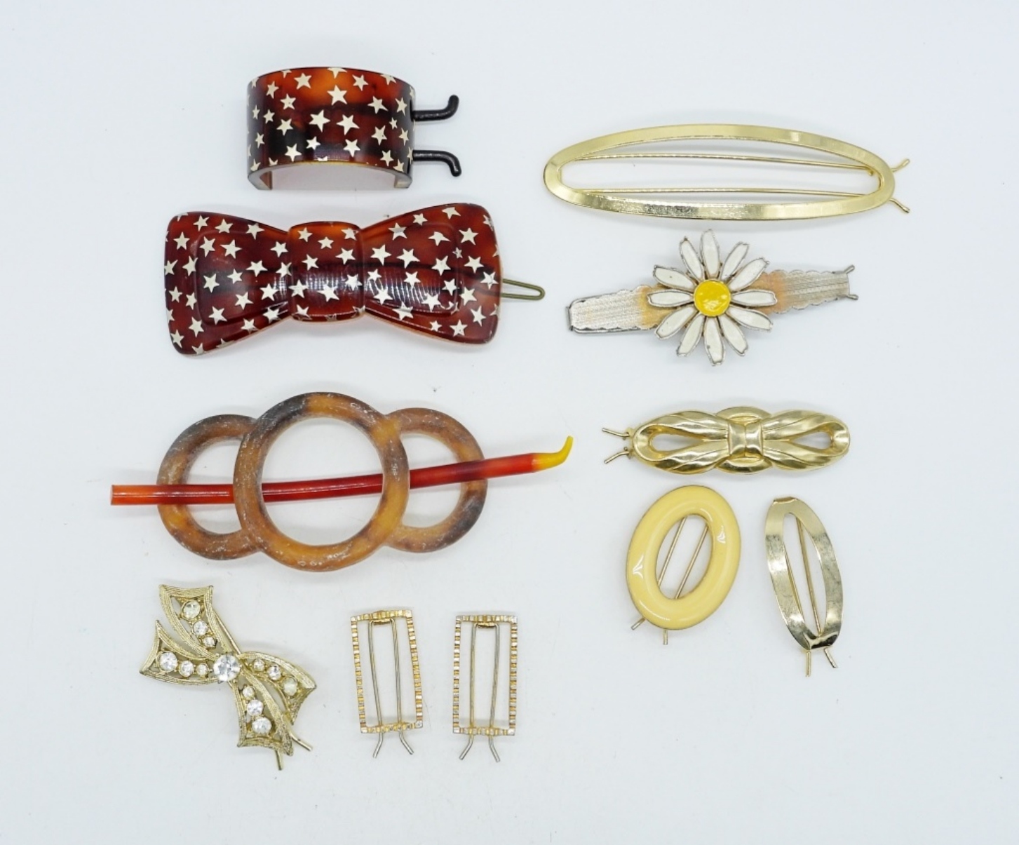 ELEVEN VINTAGE HAIR CLIPS. 1.5″ – 4.5″.