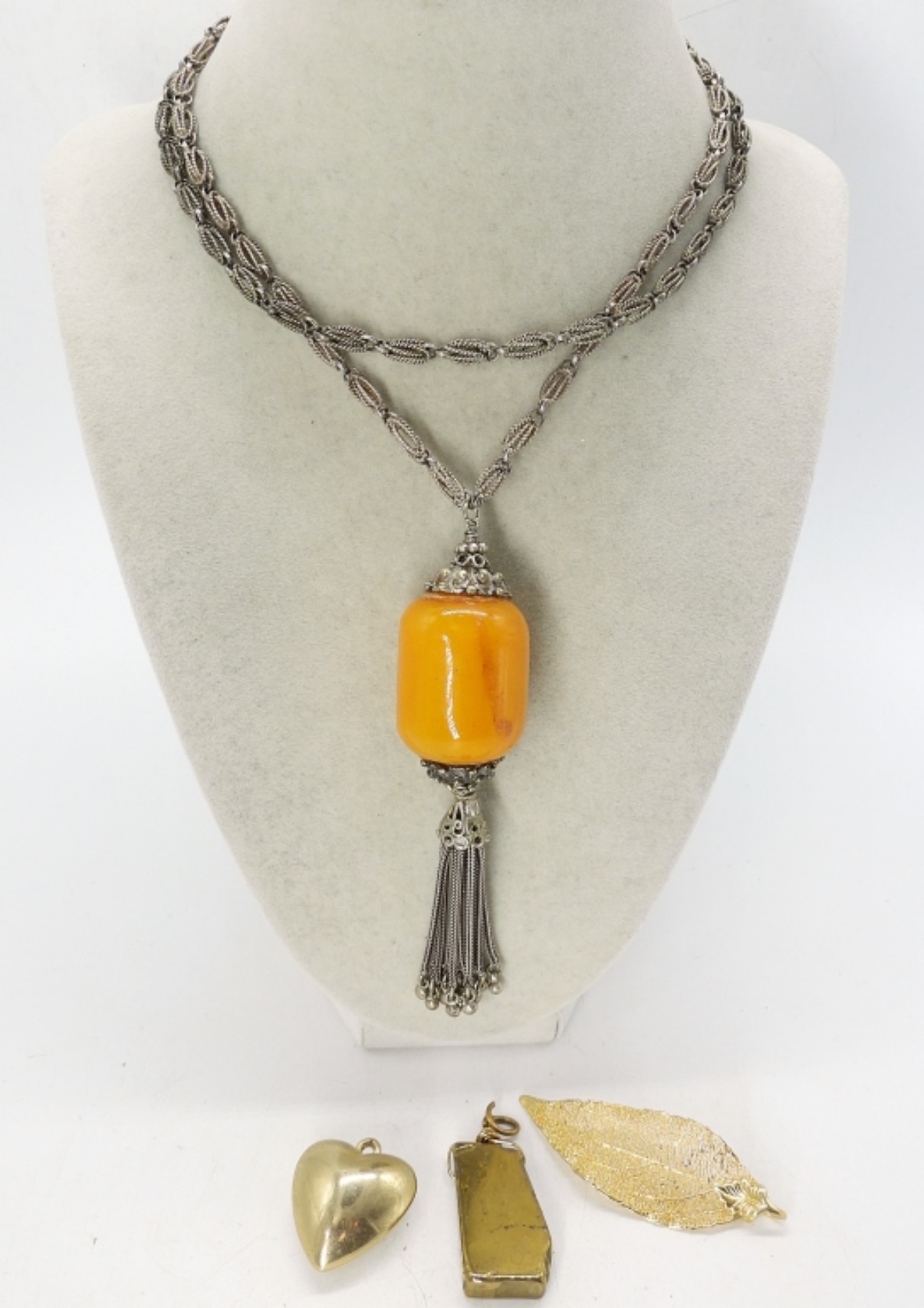 26″ CHUNKY FASHION NECKLACE. 3 GOLD TONE PENDANTS, 1-2.5″