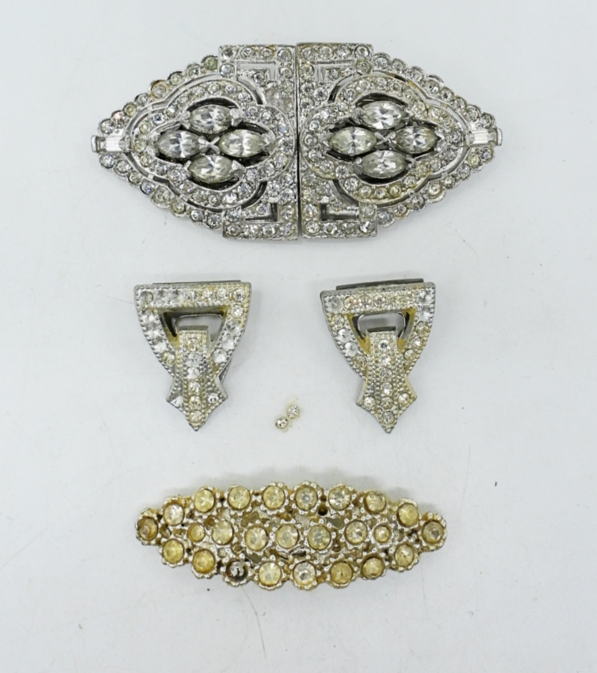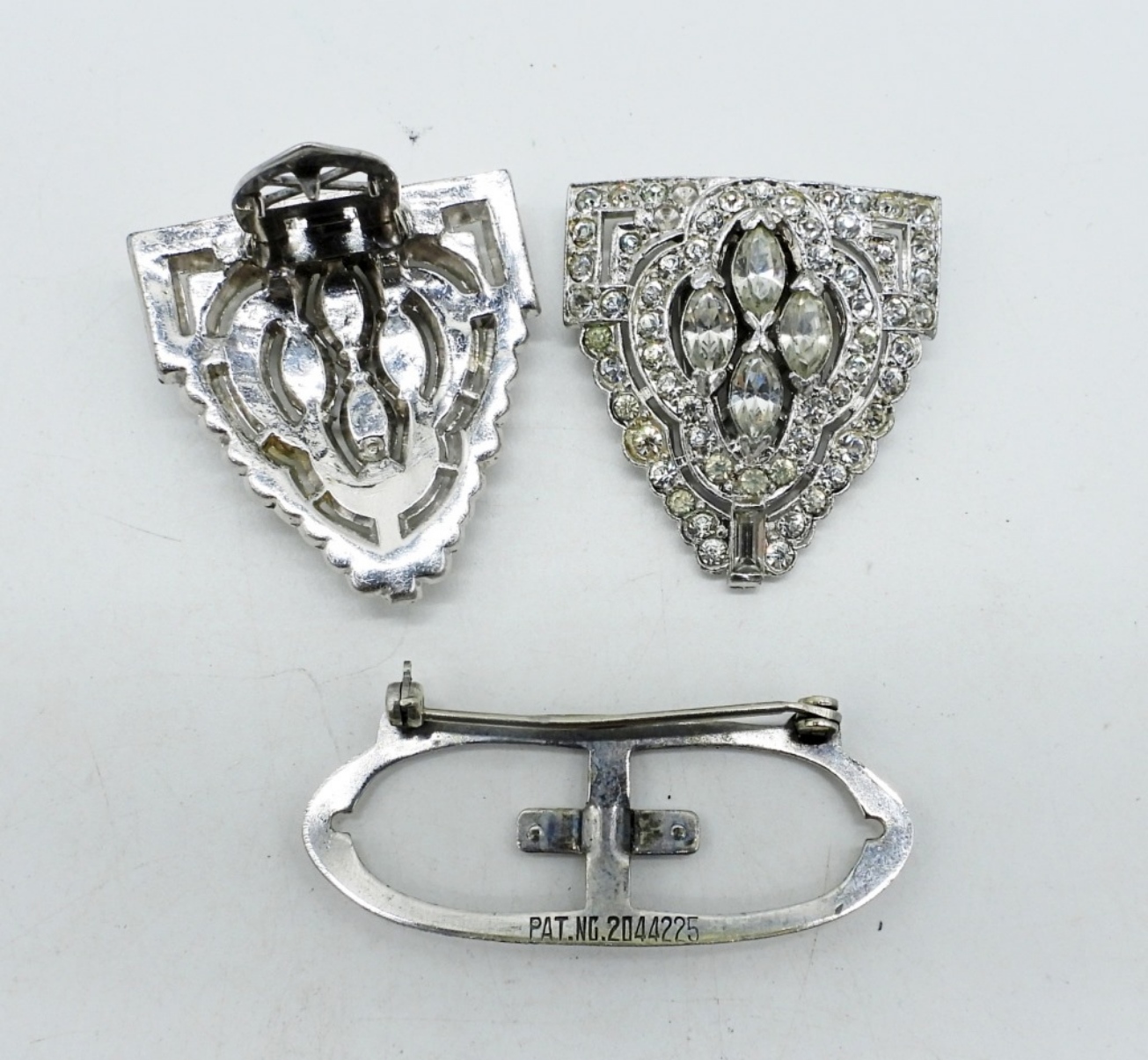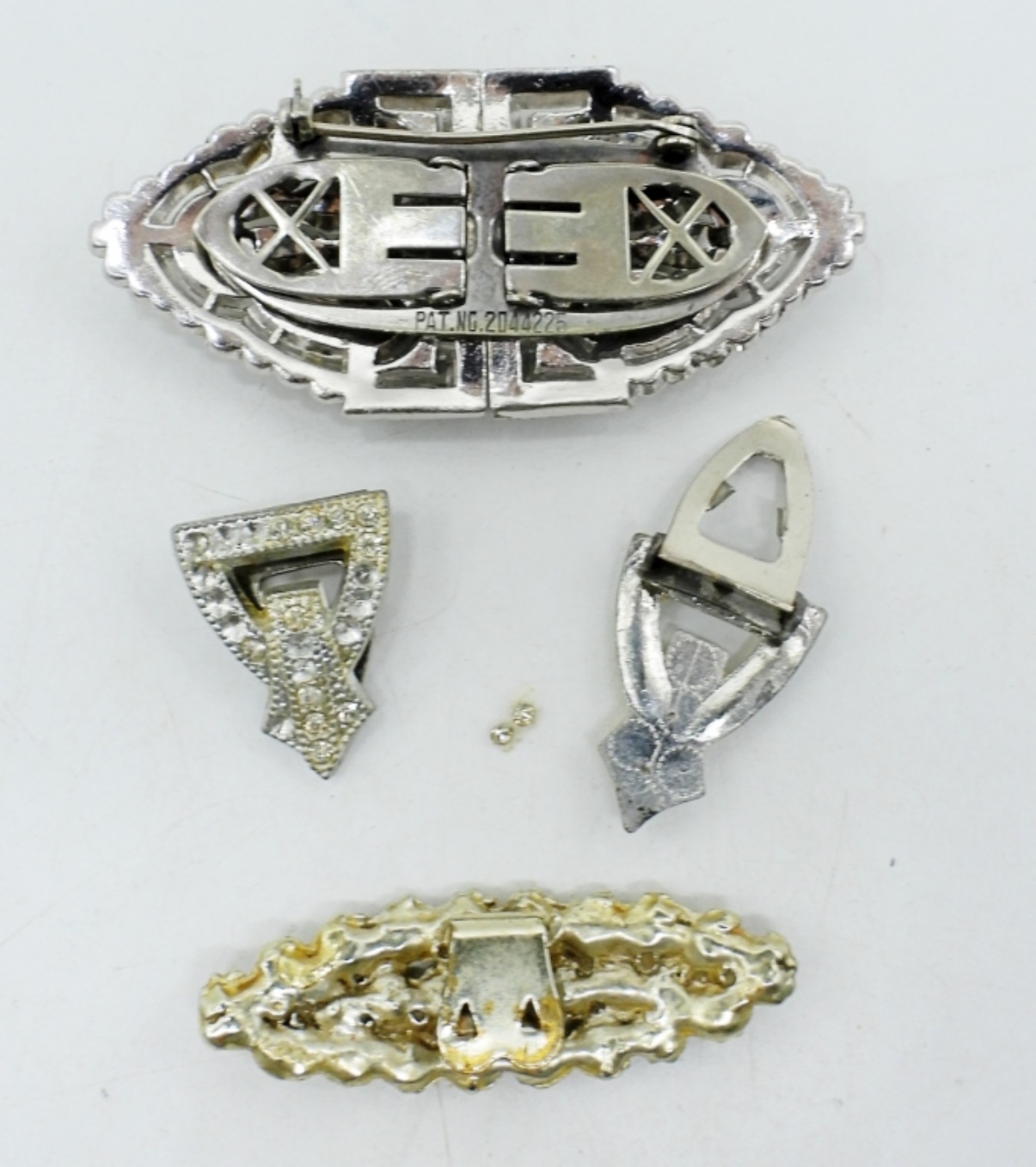 ANTIQUE RALPH POLCINI (LEDO) COMBINATION BROOCH & CLASP. THREE OTHER SMALL CLIPS.