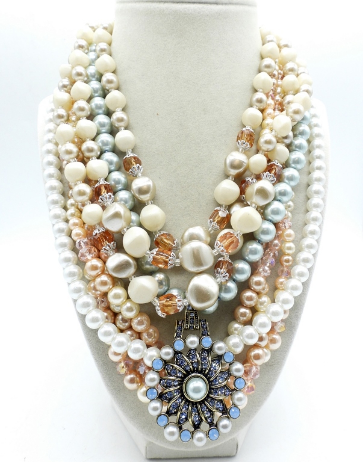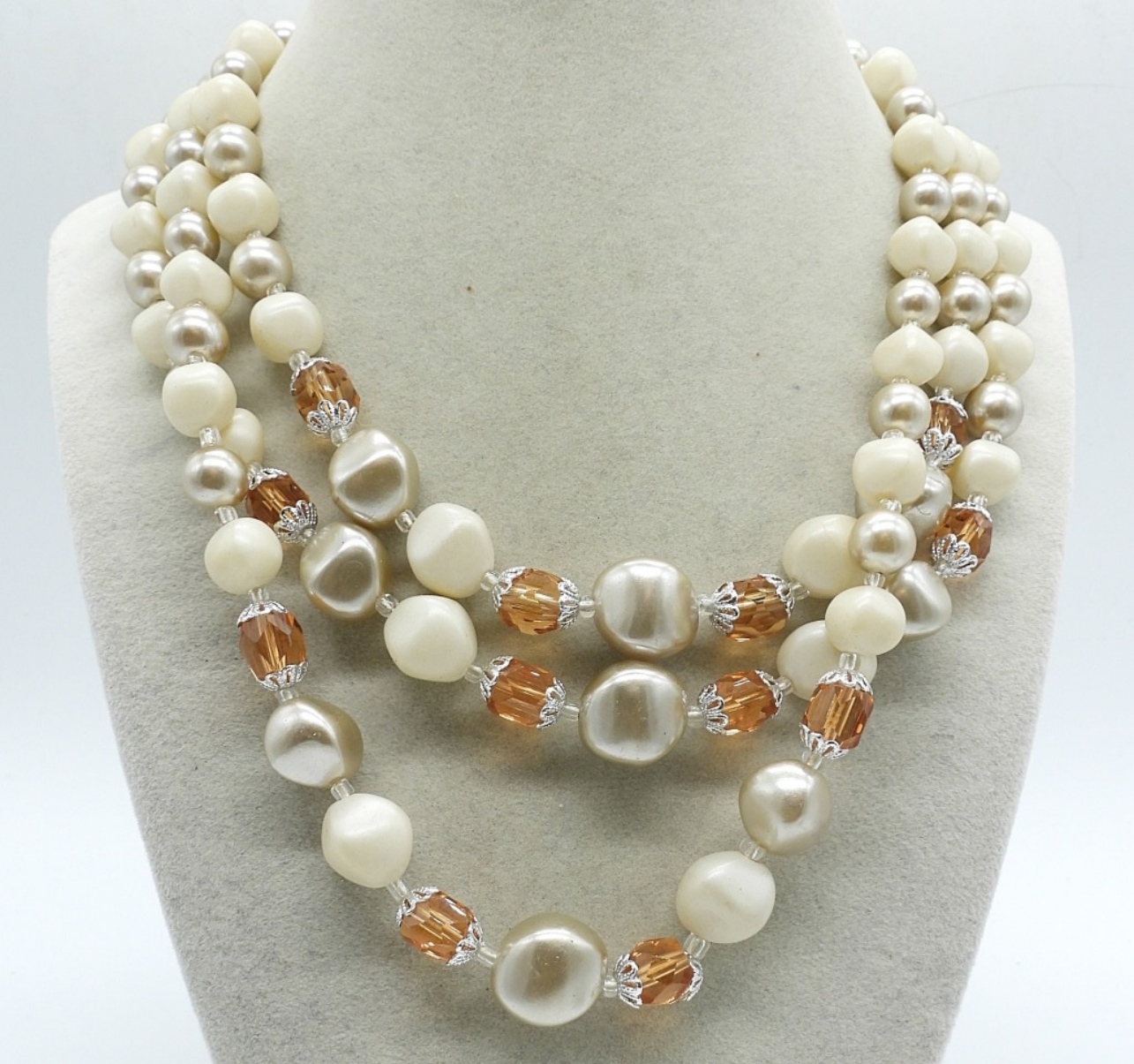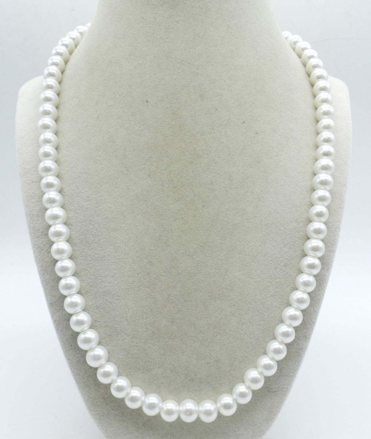 FOUR PRETTY FAUX PEARL NECKLACES. 18″, 20″, 21″.