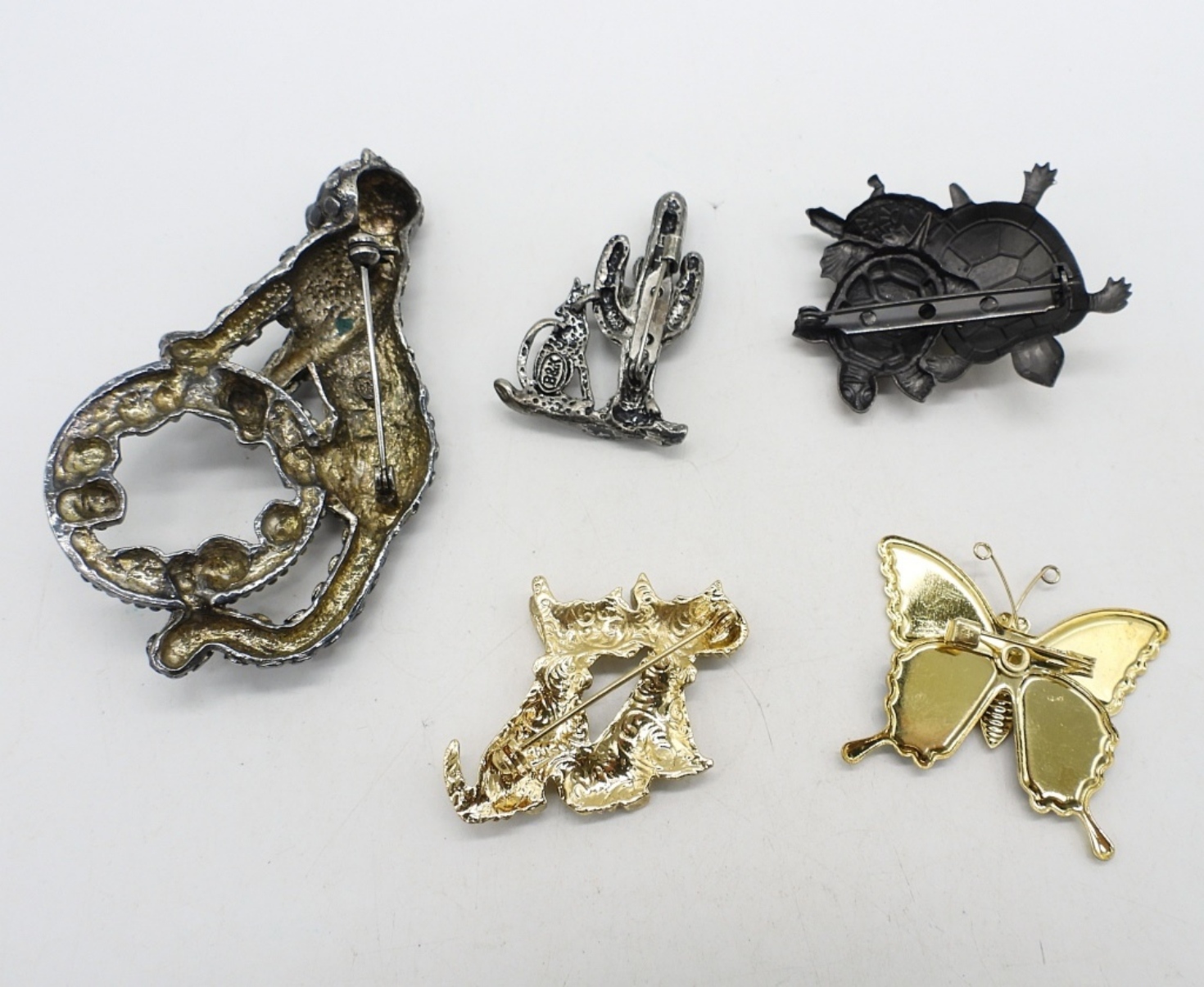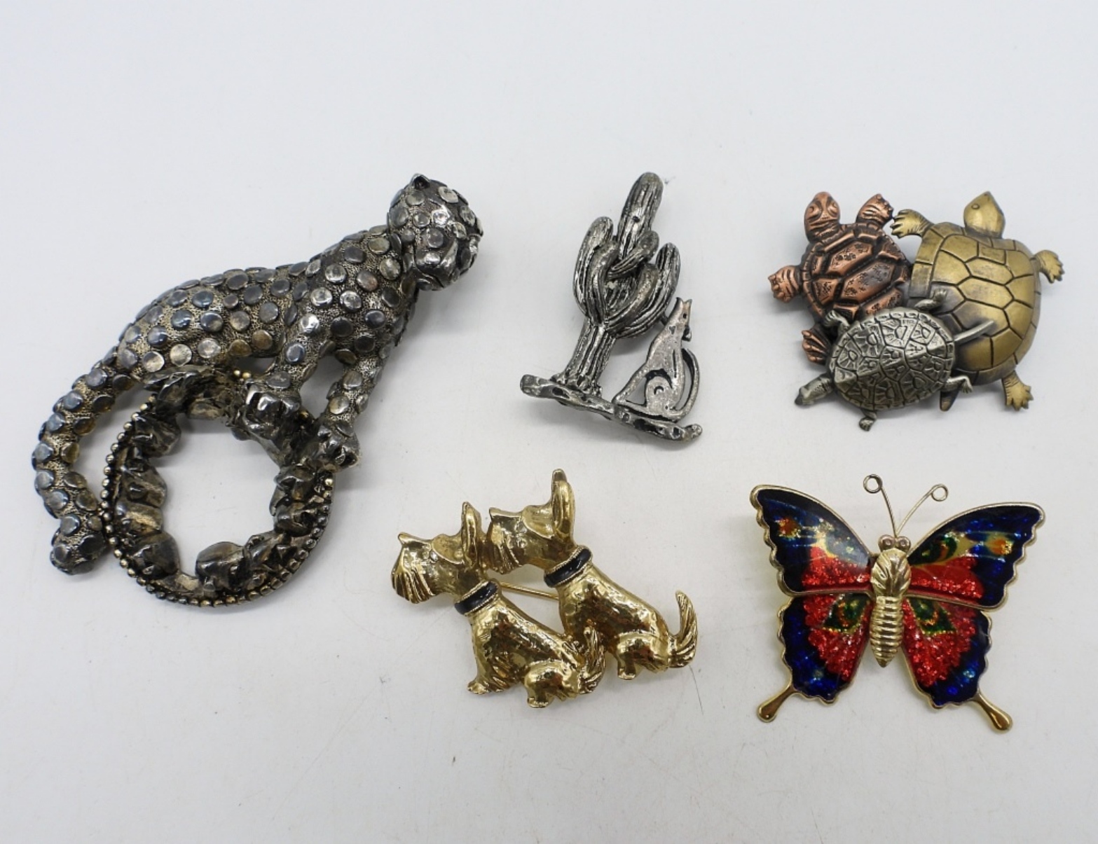 FIVE CUTE ANIMAL PINS, 1.5-3.5″