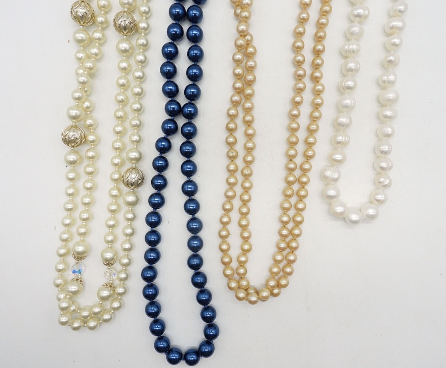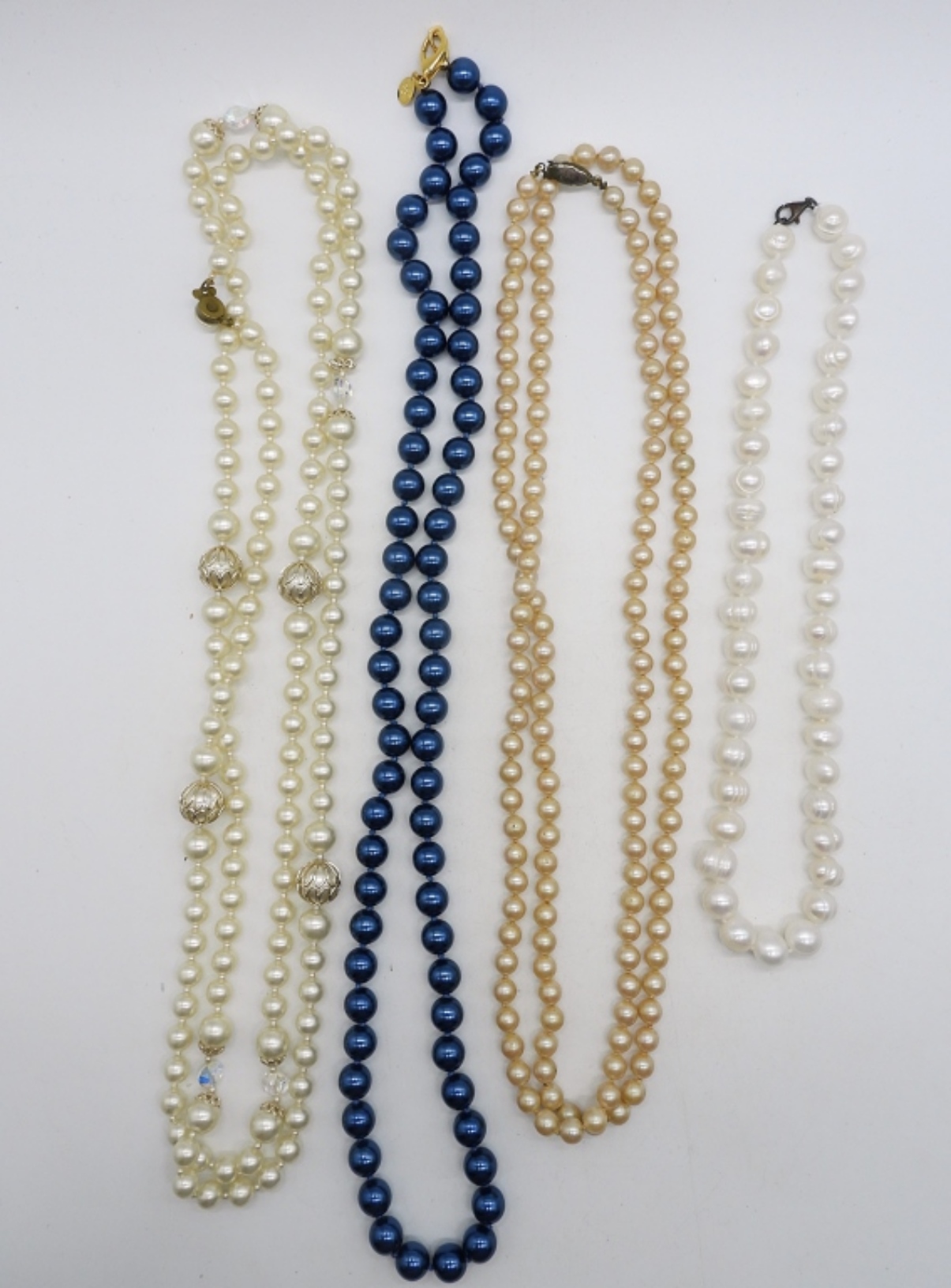 FOUR PEARL STRANDS. SOME GENUINE, SOME FAUX. 18-52″