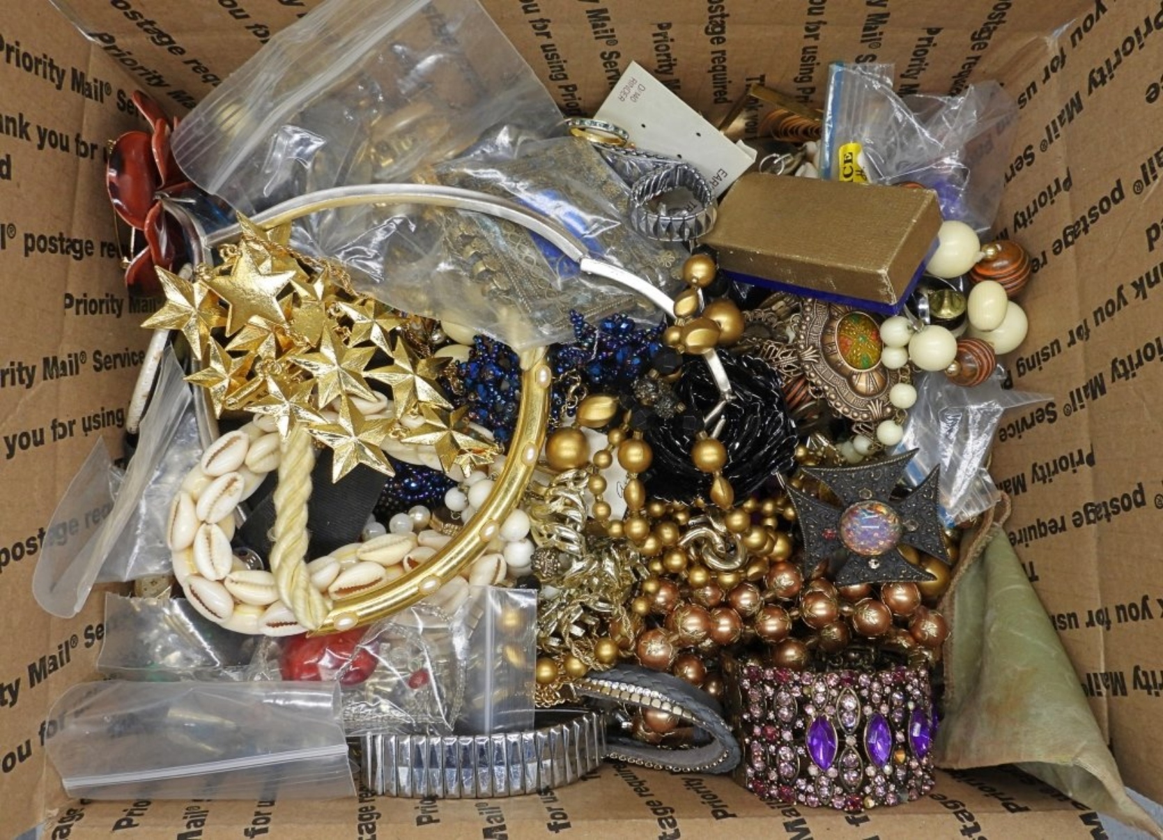 MAY BE BROKEN, TARNISHED, IN NEED OF REPAIR, ETC. SOME WEARABLE, GREAT FOR CRAFTING! MEDIUM/LARGE FLAT RATE BOX