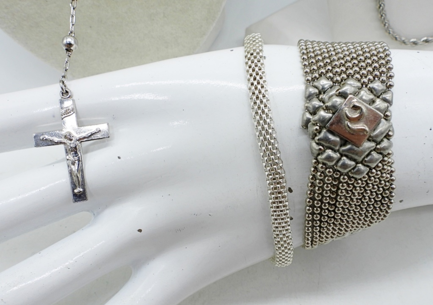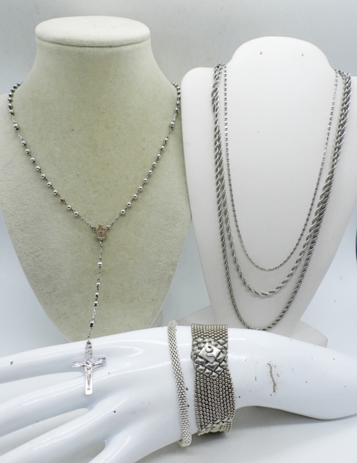 SOME ITEMS ARE STAMPED 925, THEY HAVE TESTED AS NOT BEING STERLING!!! TWO BRACELETS, 7-7.5″. FOUR NECKLACES, 16-24″.