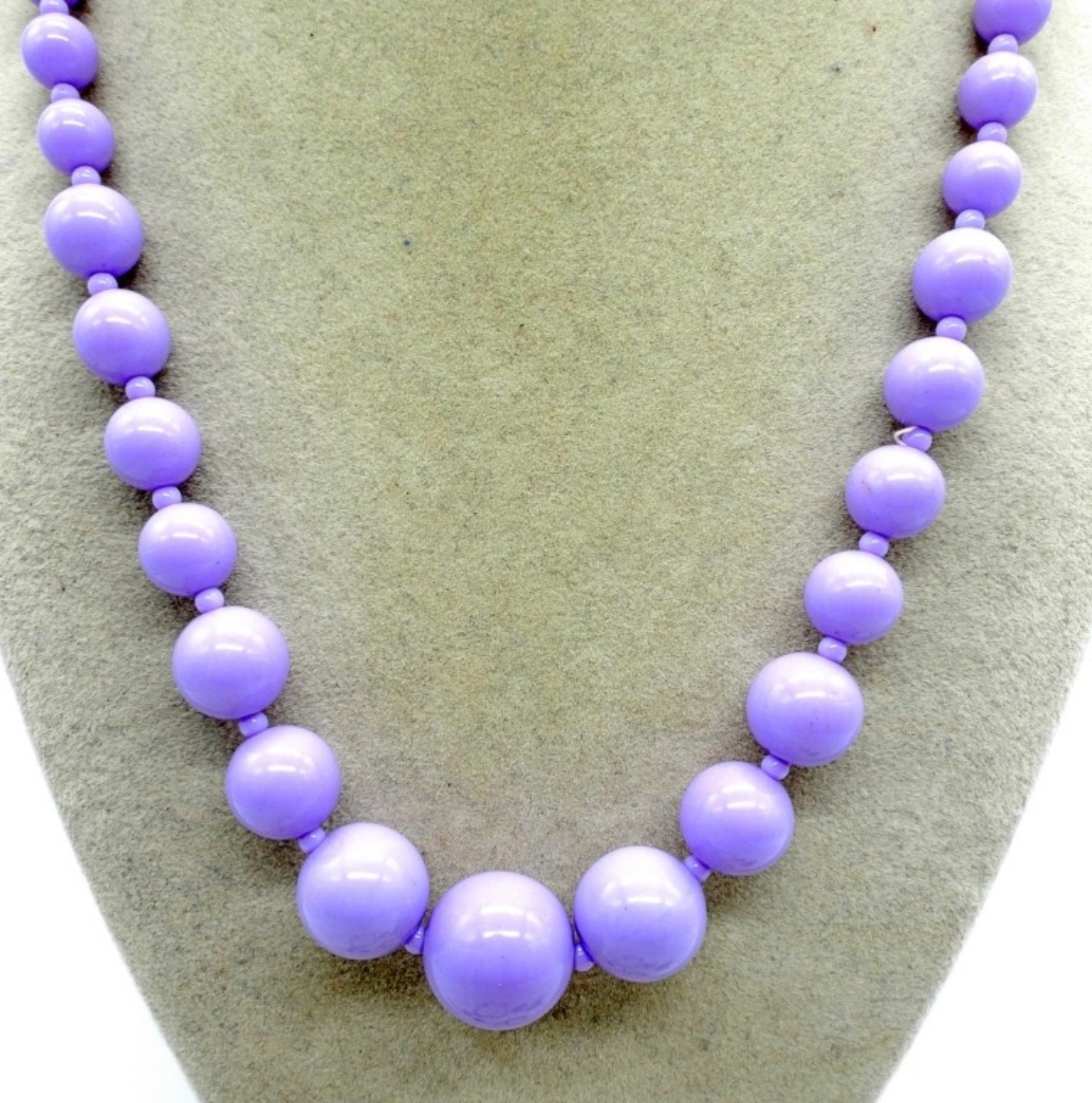 PURPLE BEADED NECKLACE, 20″. BEADED BRACELET, 8.5″ ADJUSTABLE. TWO PAIR OF EARRINGS, PIERCED & CLIP ON. RING SIZE 5.