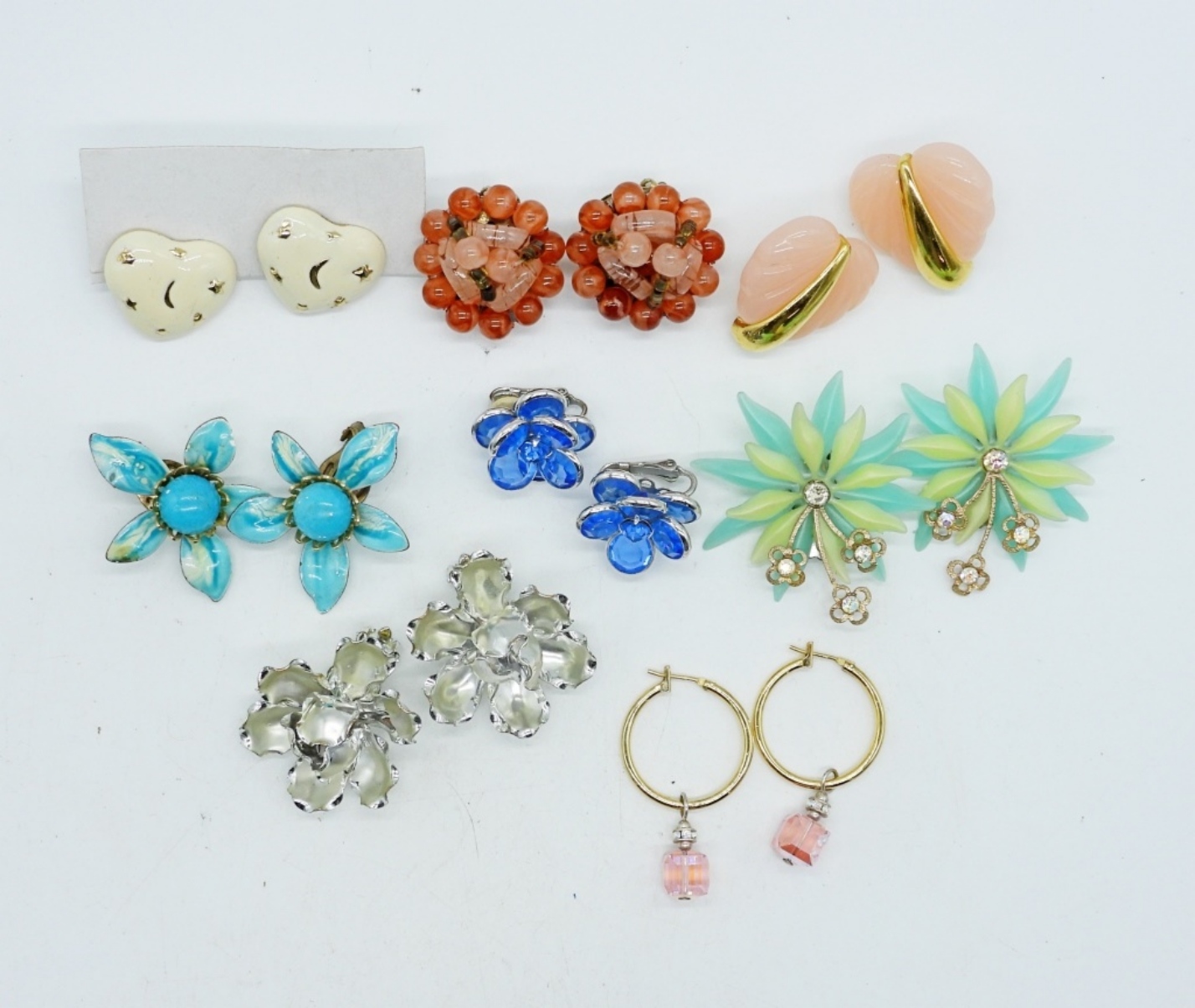 EIGHT PAIR OF VINTAGE EARRINGS. PIERCED & CLIP ONS.