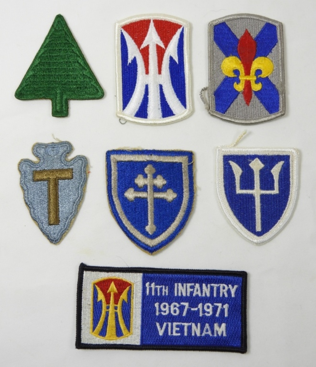 7 US army Infantry Patches in various colors and varying divisions