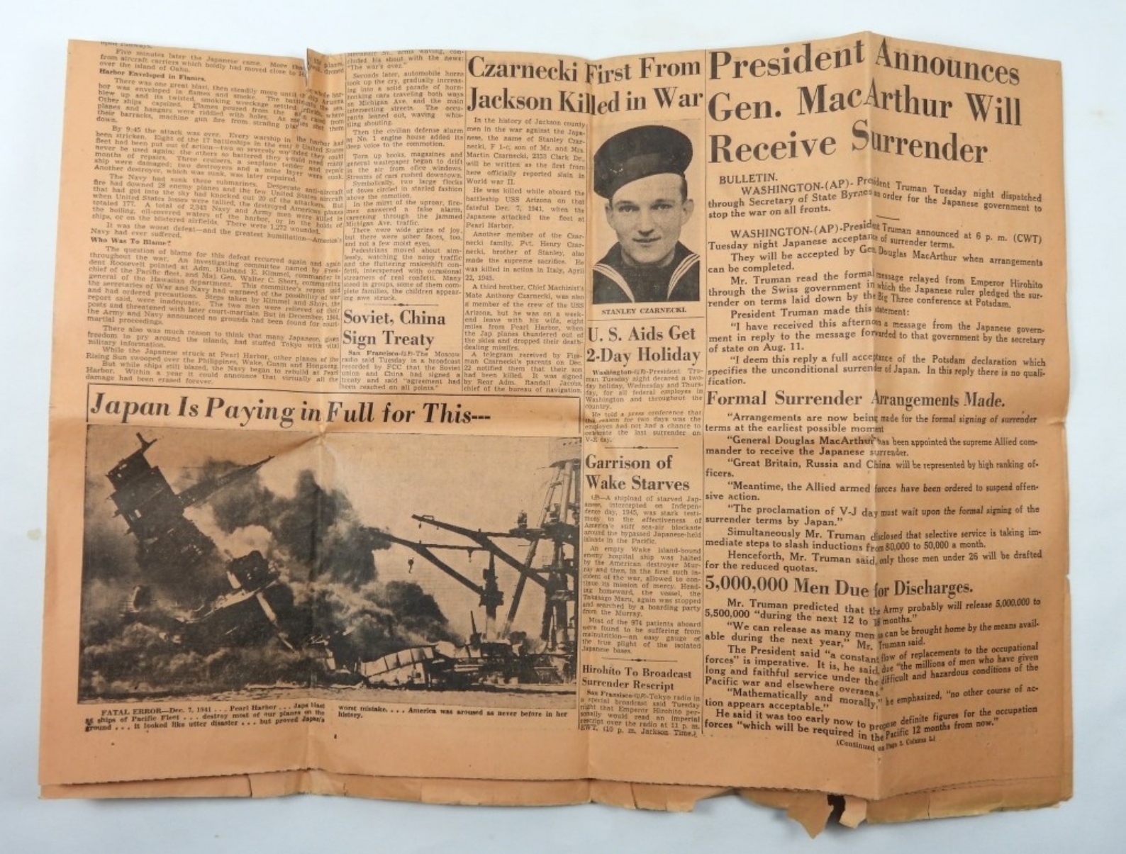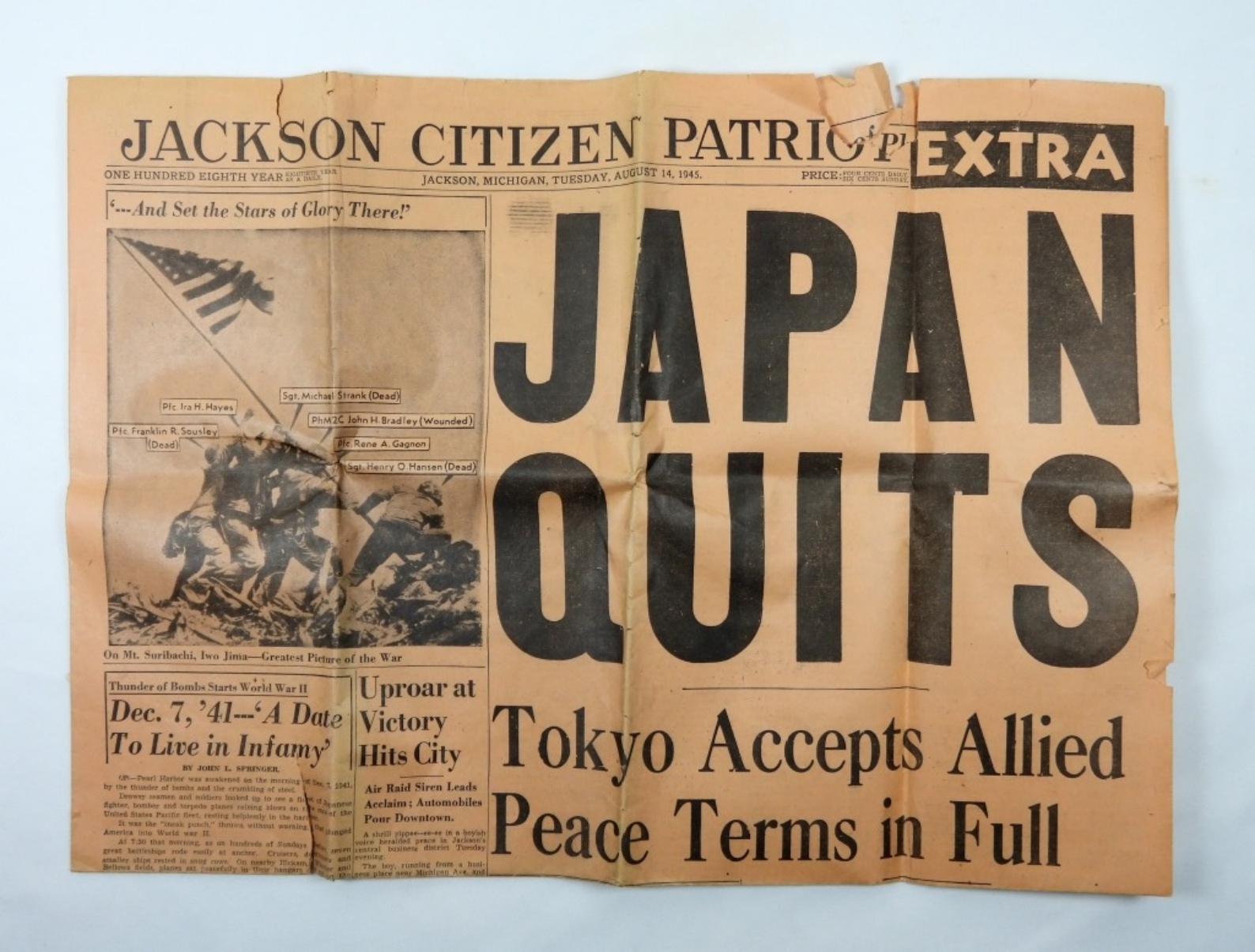 1945 JACKSON MICHIGAN WORLD WAR 2 WHOLE NEWSPAPER