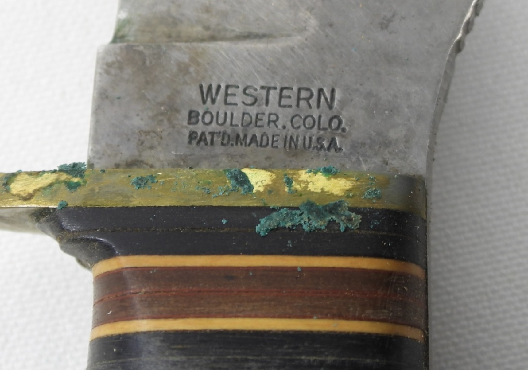 WESTERN BOULDER COLORADO KNIFE, WITH ORIGINAL SHEAT, SOME WEAR ON THE HANDLE AND SHEATH