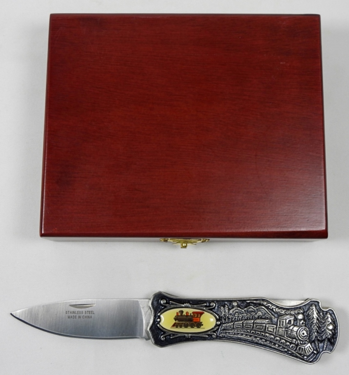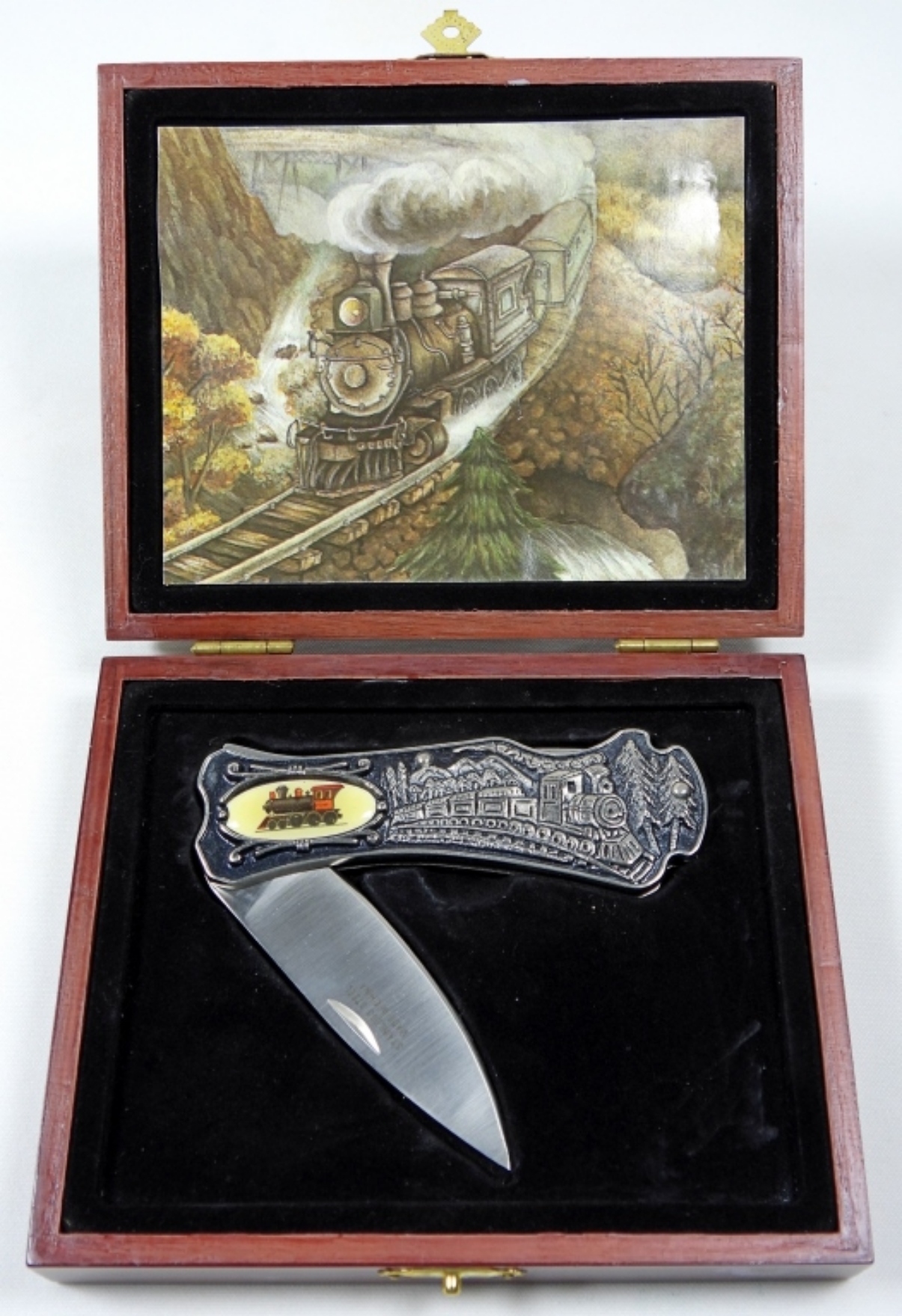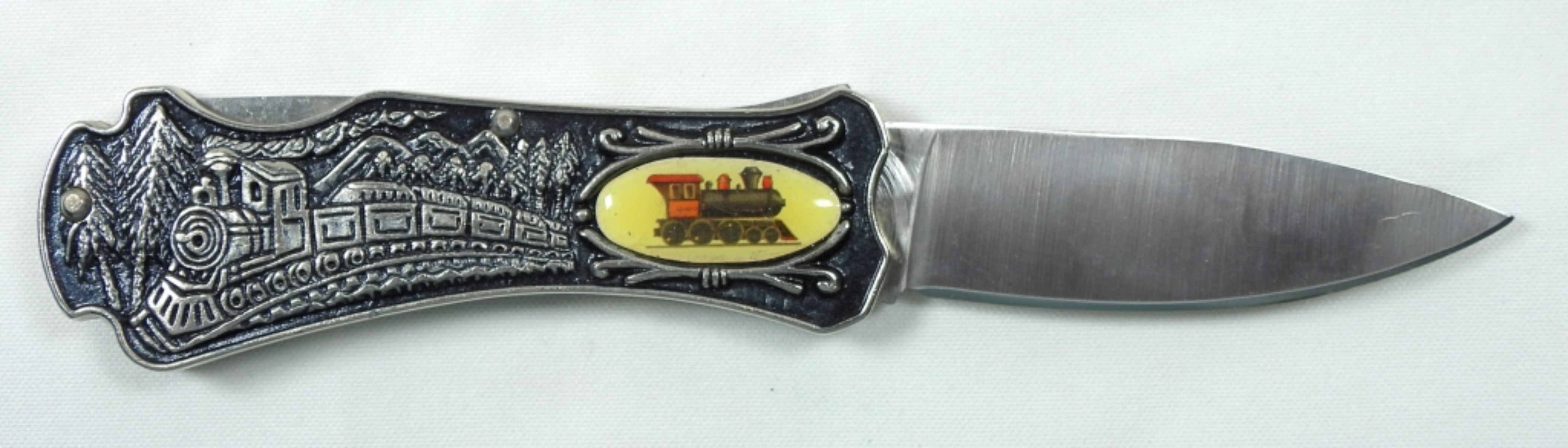 VINTAGE PAINTED ENGRAVED GIFT KNIFE TRAIN STYLE