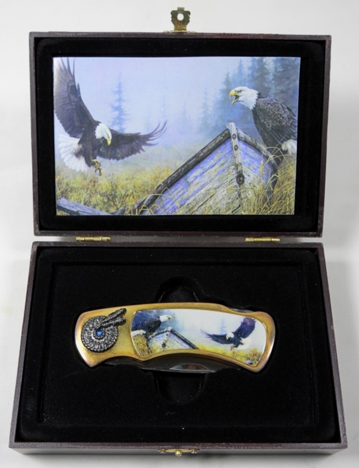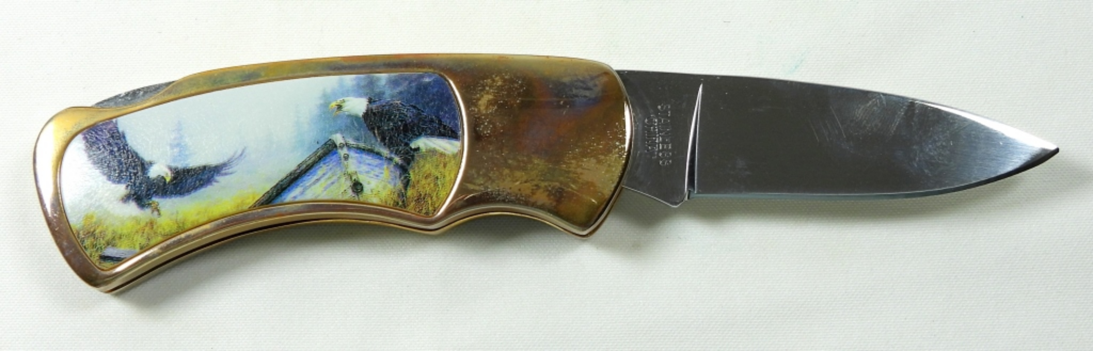 VINTAGE PAINTED ENGRAVED GIFT KNIFE EAGLE STYLE