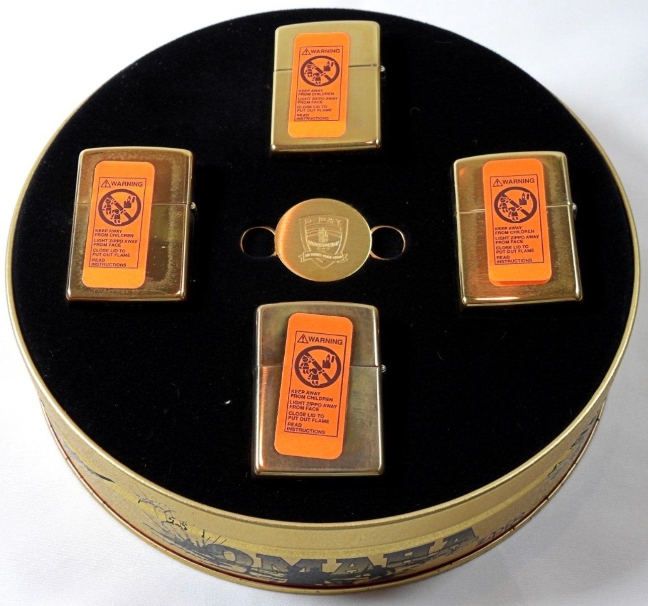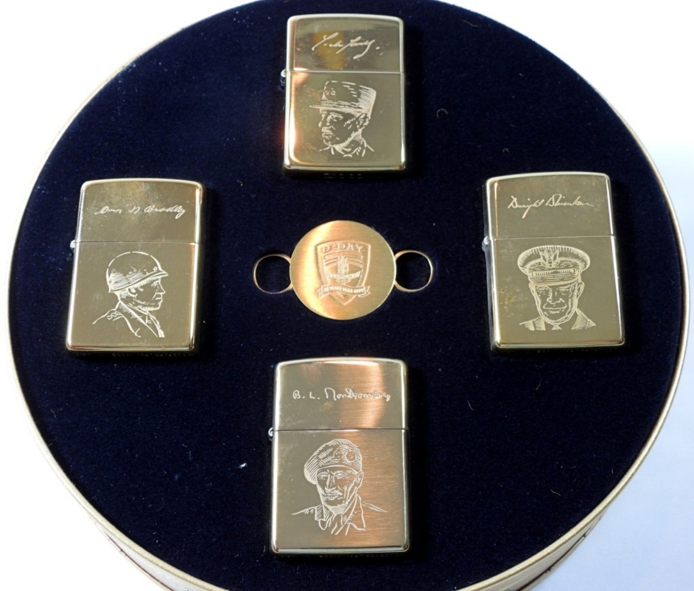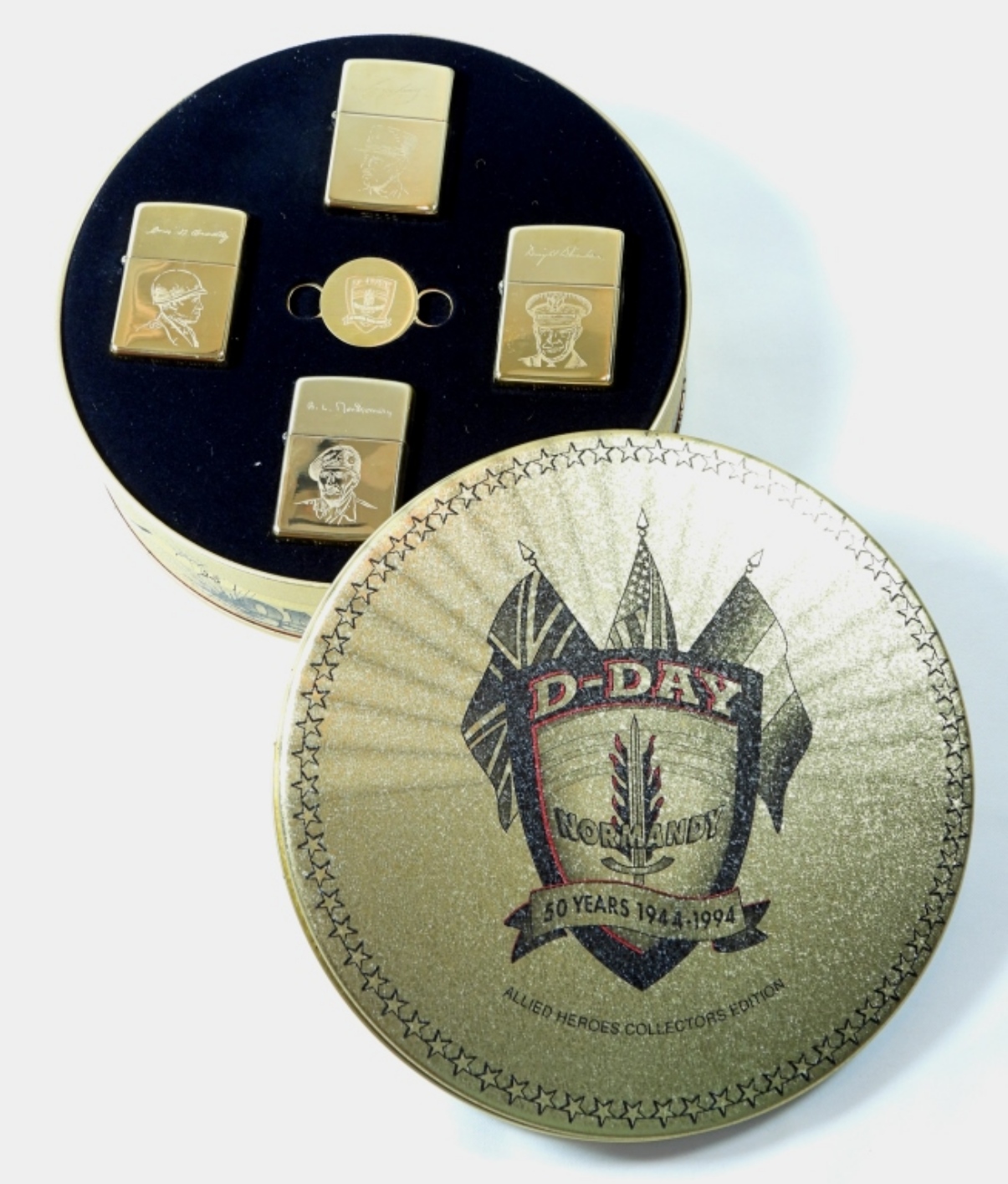 IN ORIGINAL TIN CASE, SEALED ZIPPOS, PLUS A KEY RING, D-DAY NORMANDY 50 YEARS 1944-1994, ALLIED HEROES COLLECTORS EDITION