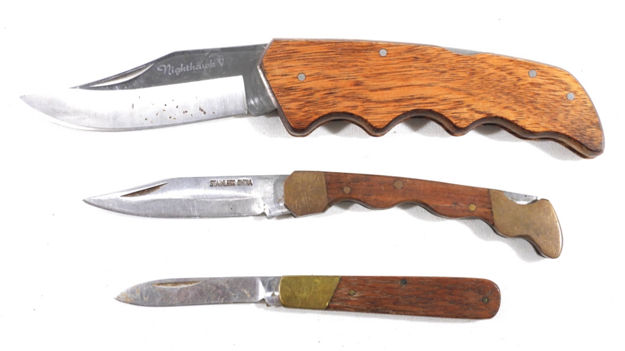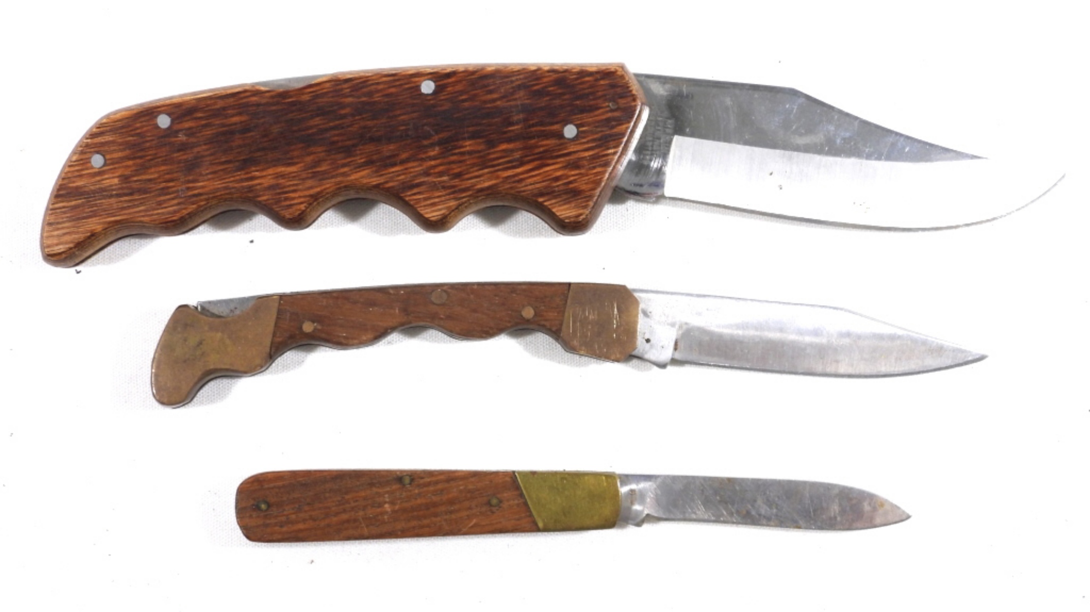 3 SINGLE BLADE WOODEN HANDLE FOLDING LOCKBACK KNIVES