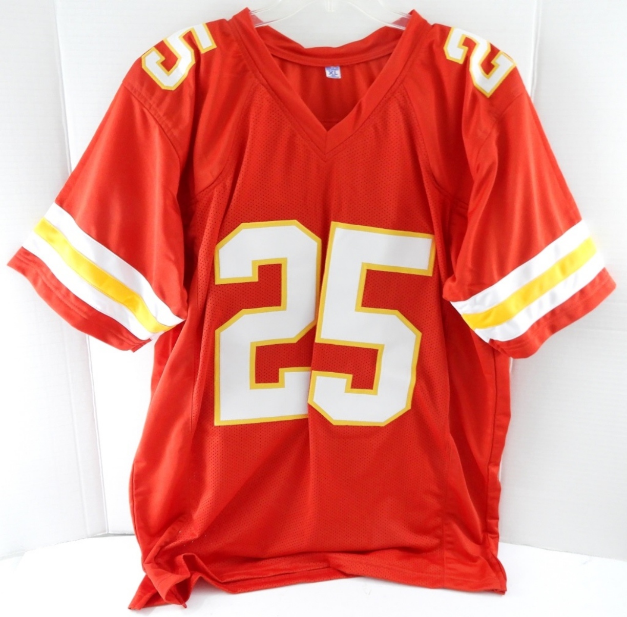 NFL KANSAS CITY CHIEFS, CLYDE EDWARDS-HELAIRE #25 SIGNED JERSEY. BECKETT COA WK21898. SIZE MEN’S XL
