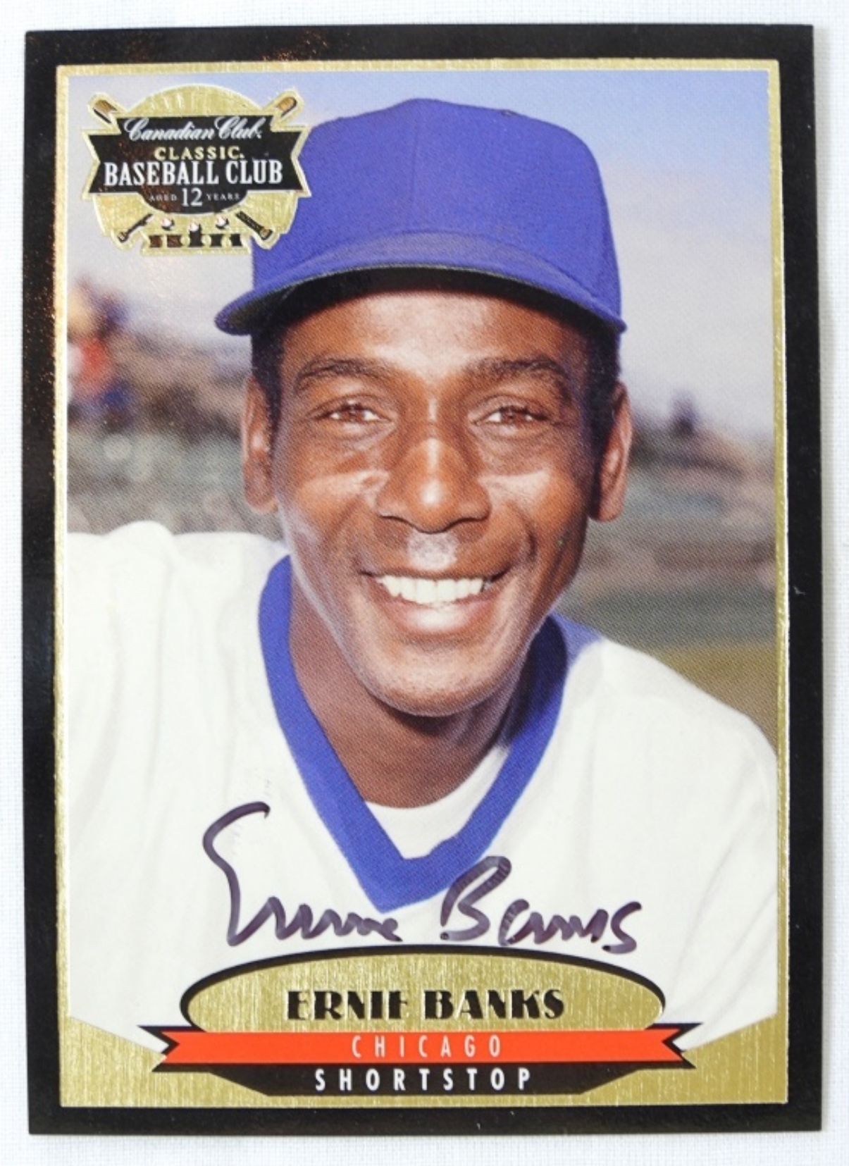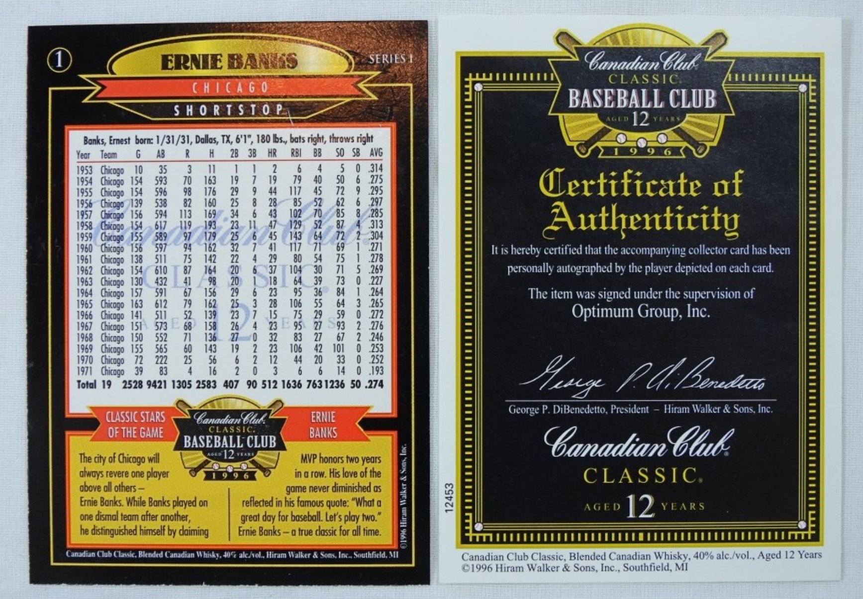EARNIE BANKS SIGNED CANADIAN CLUB CARD, WITH COA BY CANADIAN CLUB