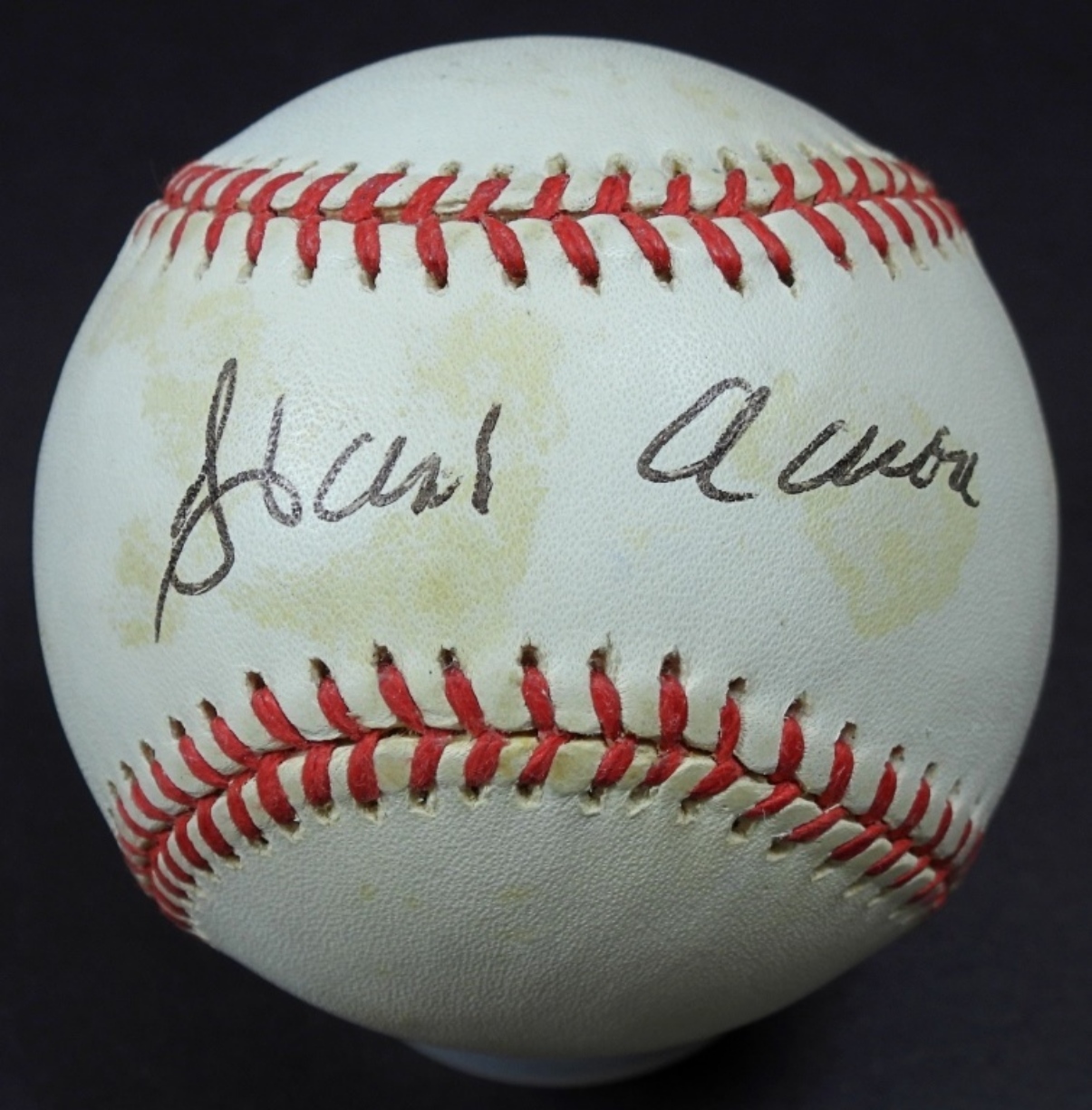 HANK AARON SIGNED BASEBALL, NO COA UNVERIFIED