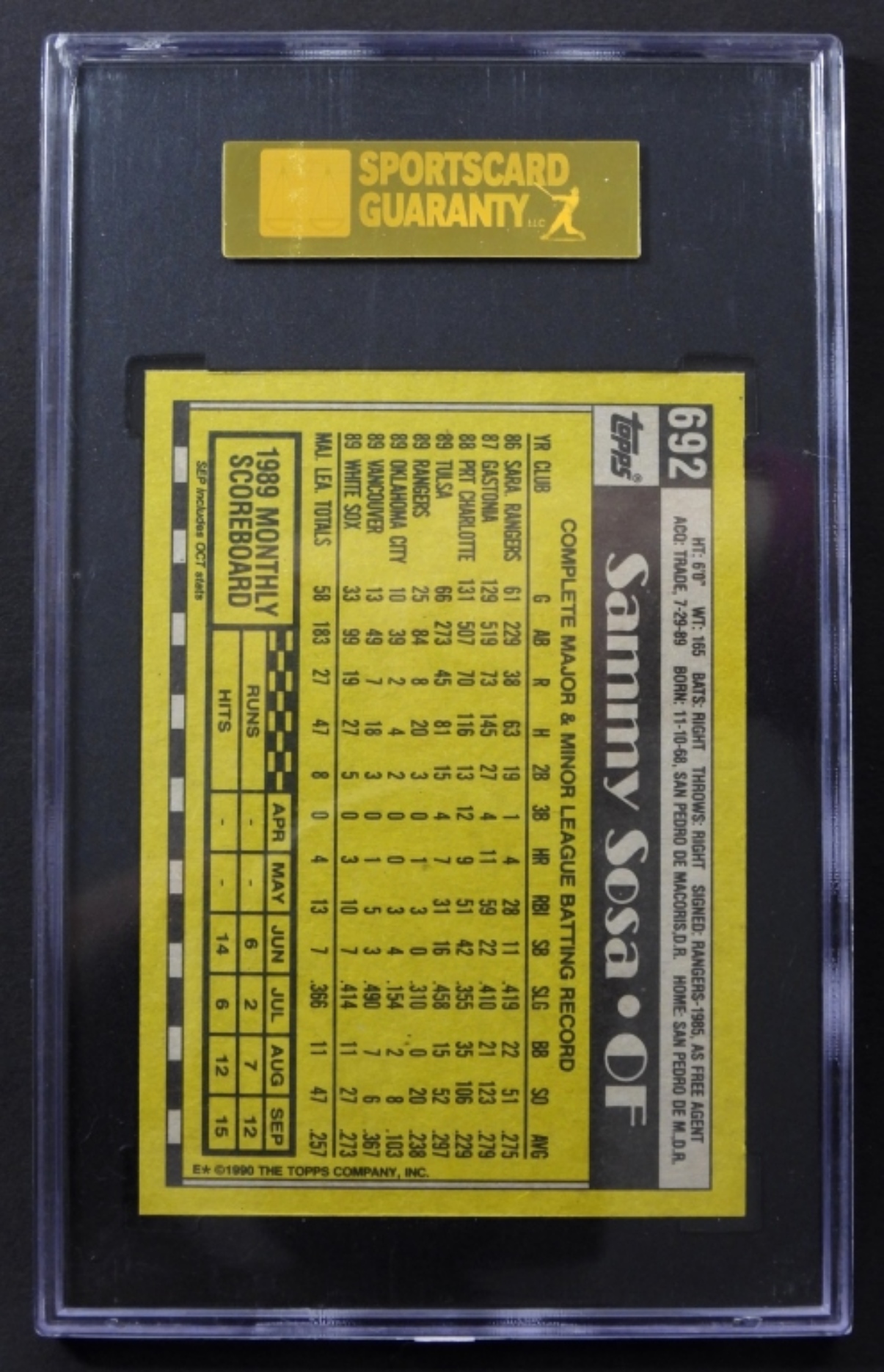 1990- TOPPS- #692- SAMMY SOSA- SGC- 8.5 NM-MT. PREOWNED.
