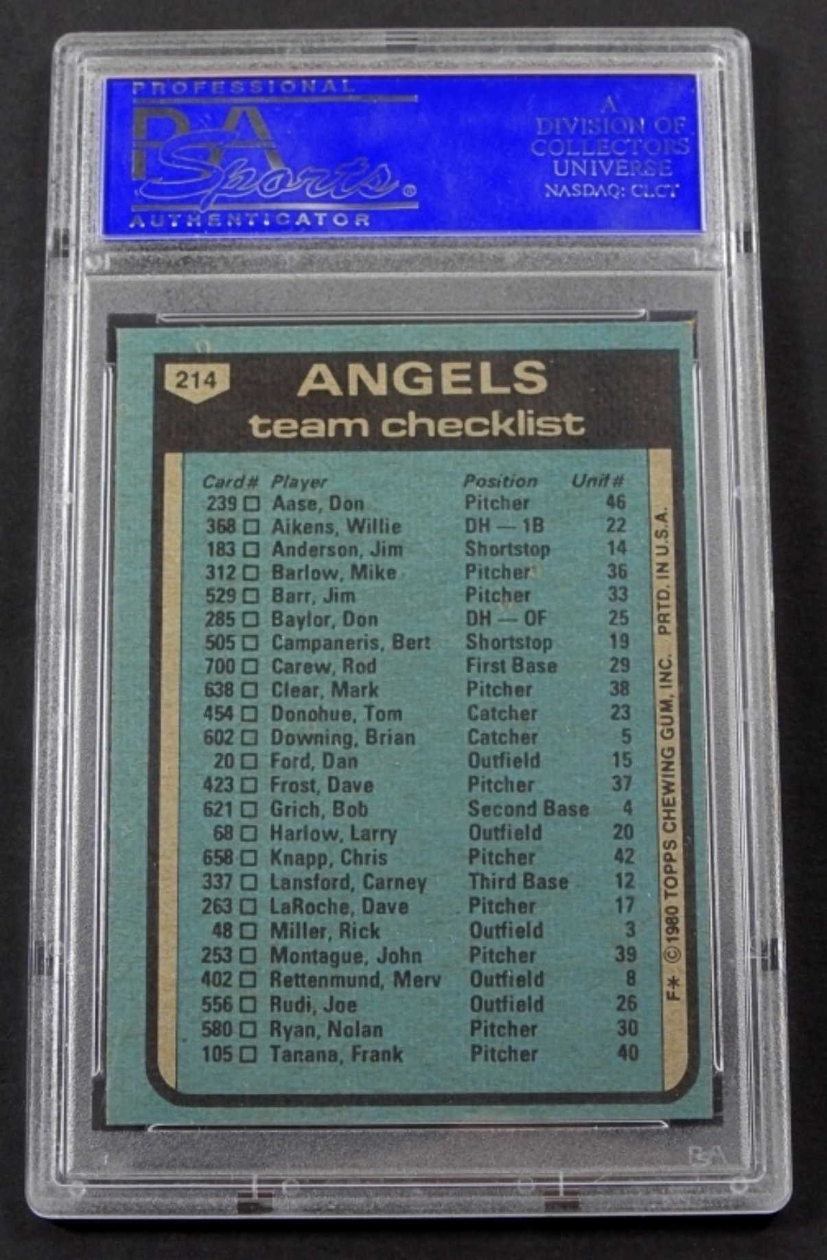 1980 TOPPS- ANGELS TEAM- #214- MANAGER JIM FREGOSI- PSA=- 9 MINT. PREOWNED.