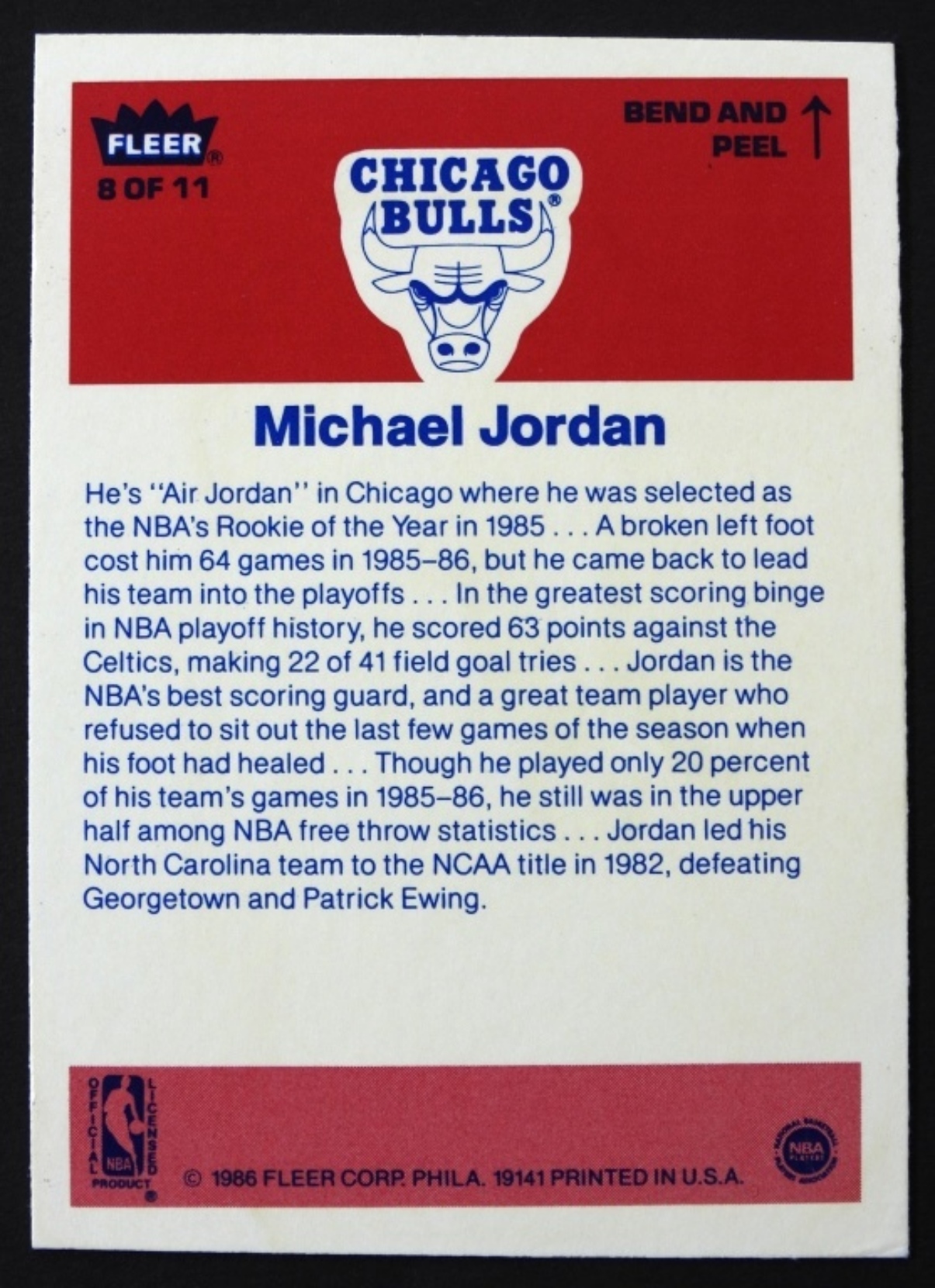 #8 MICHAEL JORDAN ROOKIE STICKER – NICE VGEX+/EX light dog ear corner bottom left – GREAT COLOR & GLOSS / SURFACE