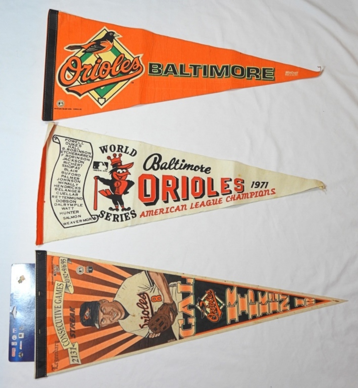 3 VARIETY BALTIMORE ORIOLES PENNANTS