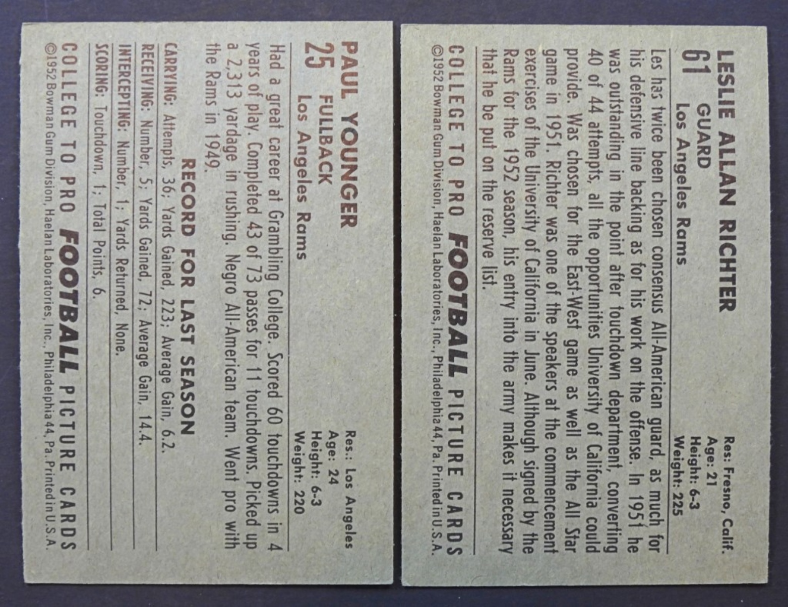 #25 TANK YOUNGER & #61 LES RICHTER (RC) – BOTH NICE EX+