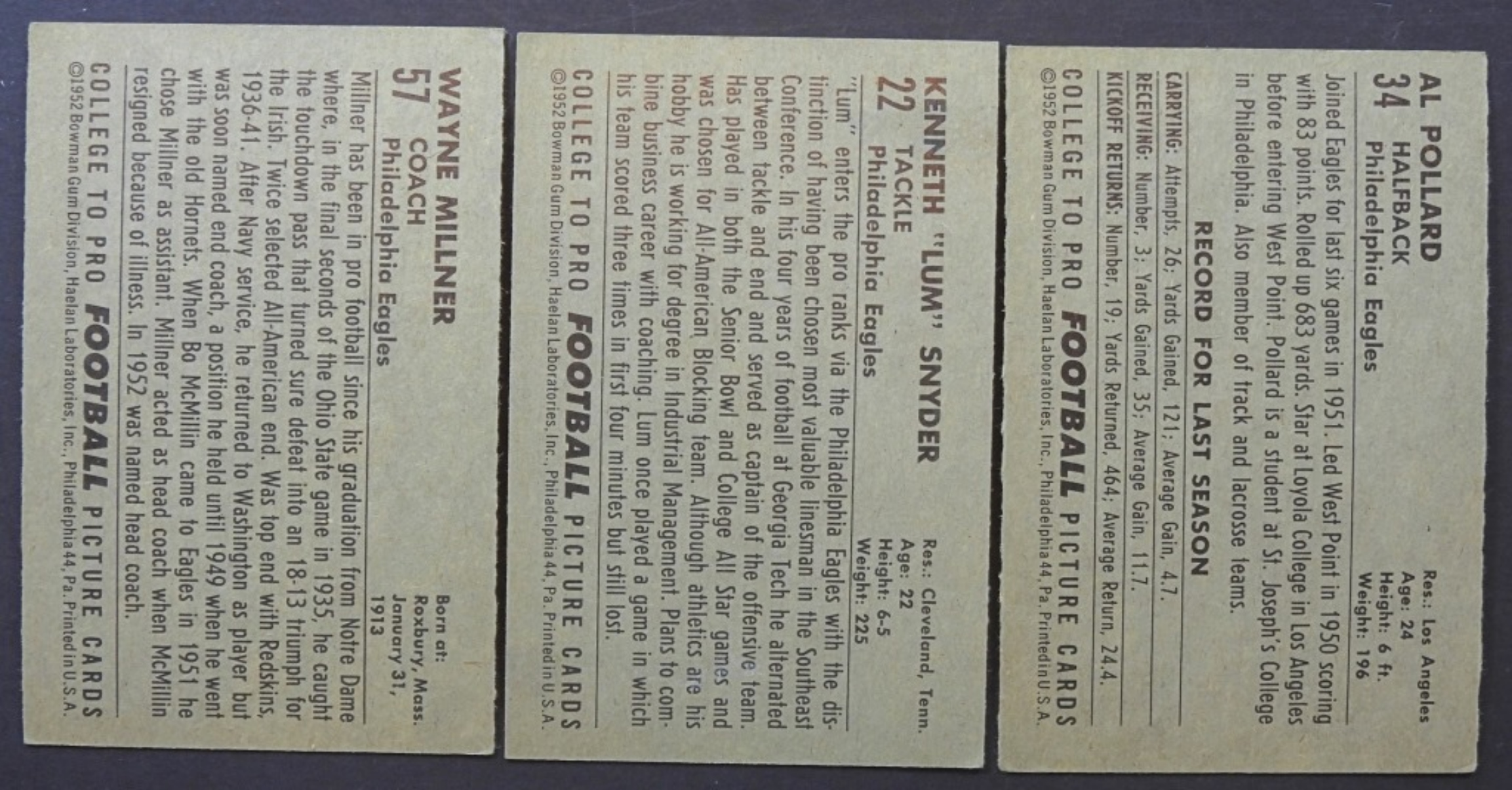 #22 SNYDER, #34 POLLARD, #57 MILLNER (RC) – NICE EX